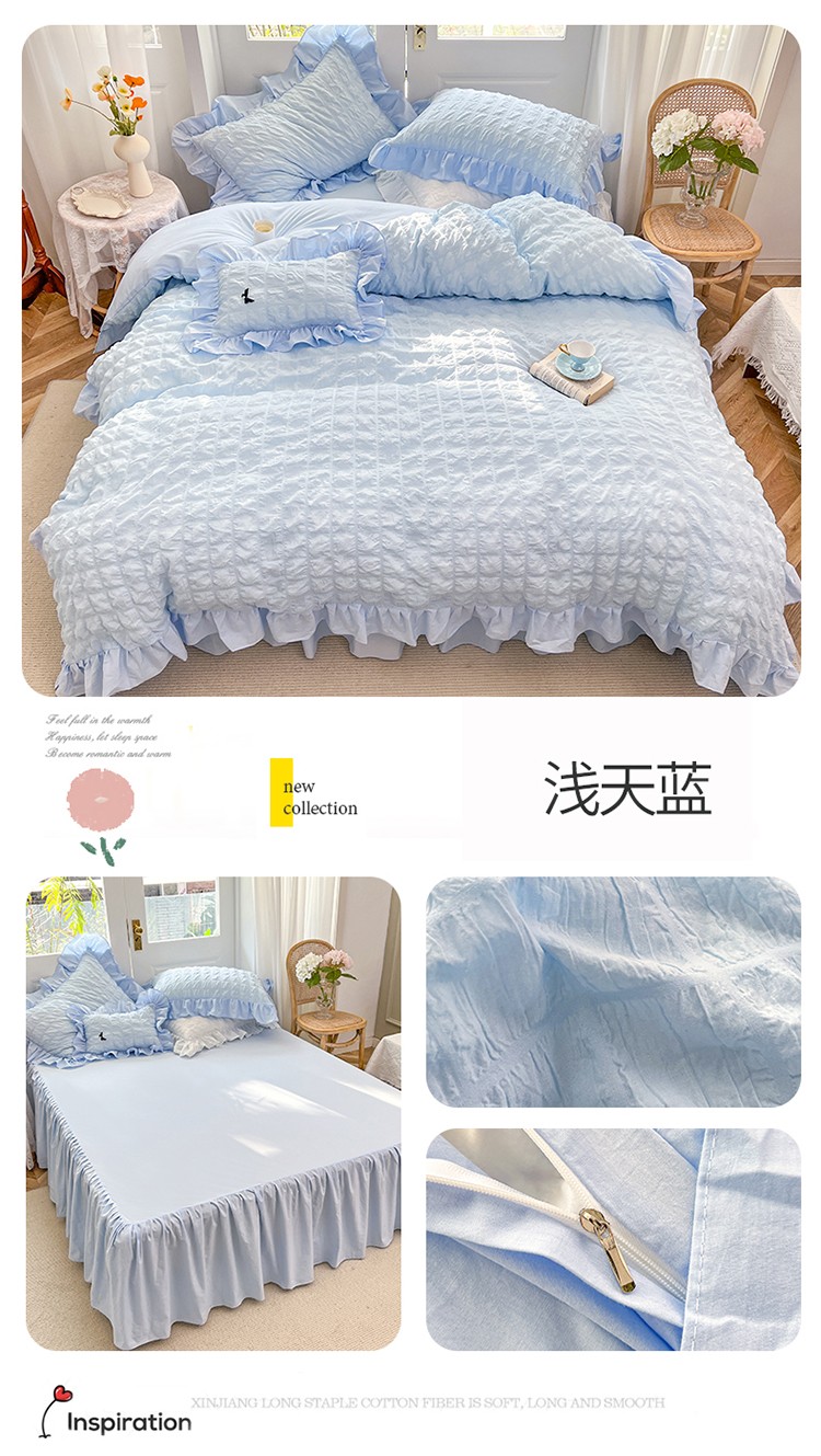 商品名称:婳庭家居 2023新款全棉泡泡纱四件套 浅天蓝