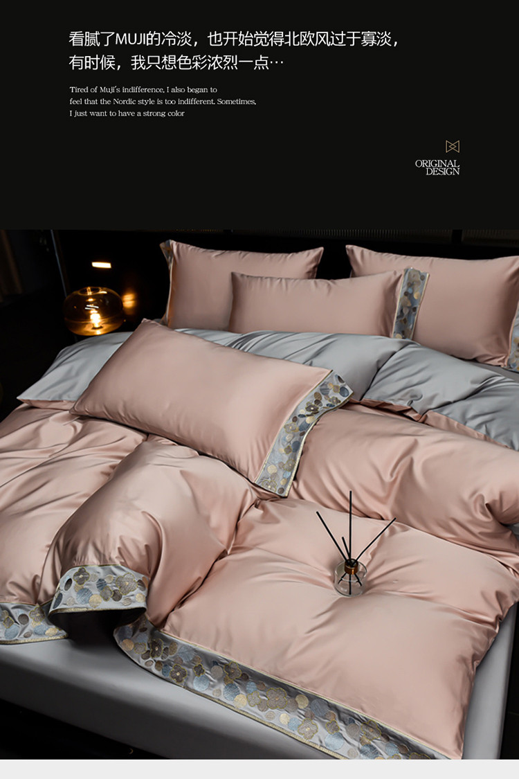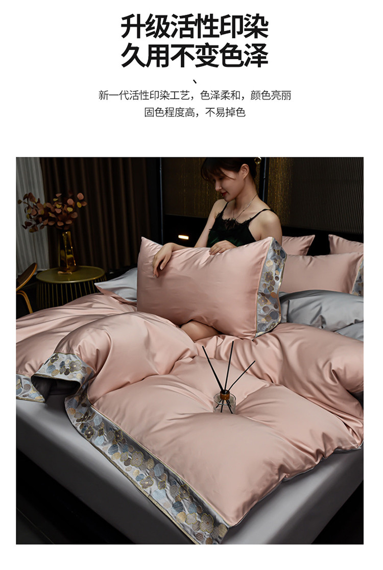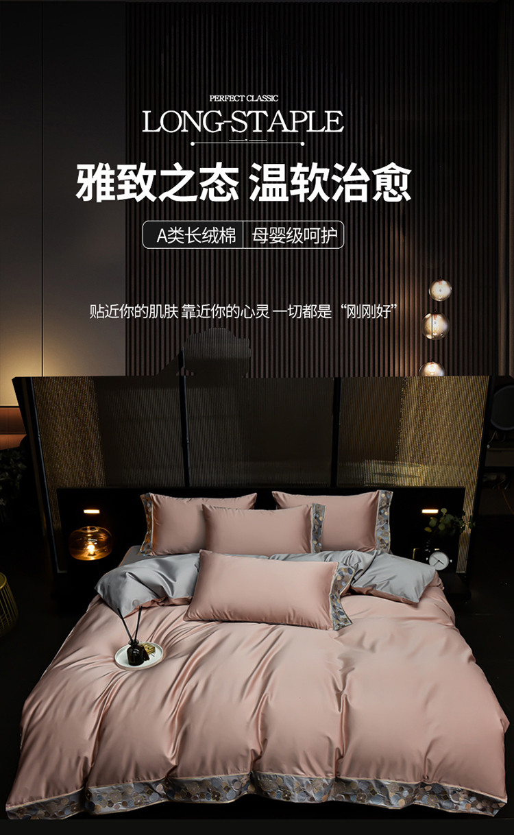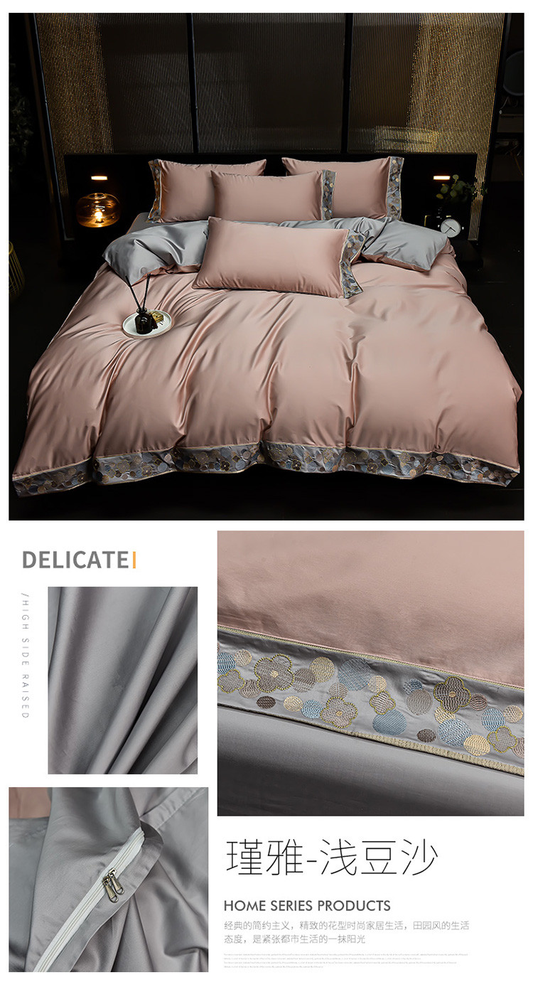 商品名称:金莎浪 2023新款瑾雅系列100支长绒棉四件套 瑾雅-浅豆沙