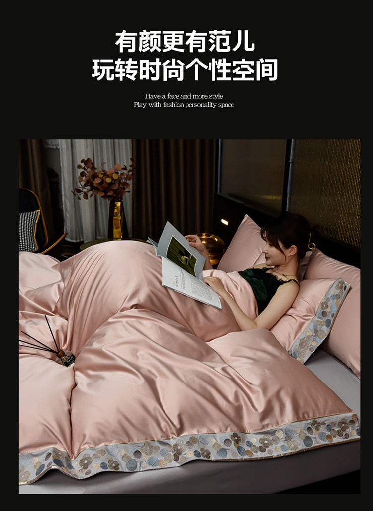 金莎浪 2023新款瑾雅系列100支长绒棉四件套 瑾雅-浅豆沙