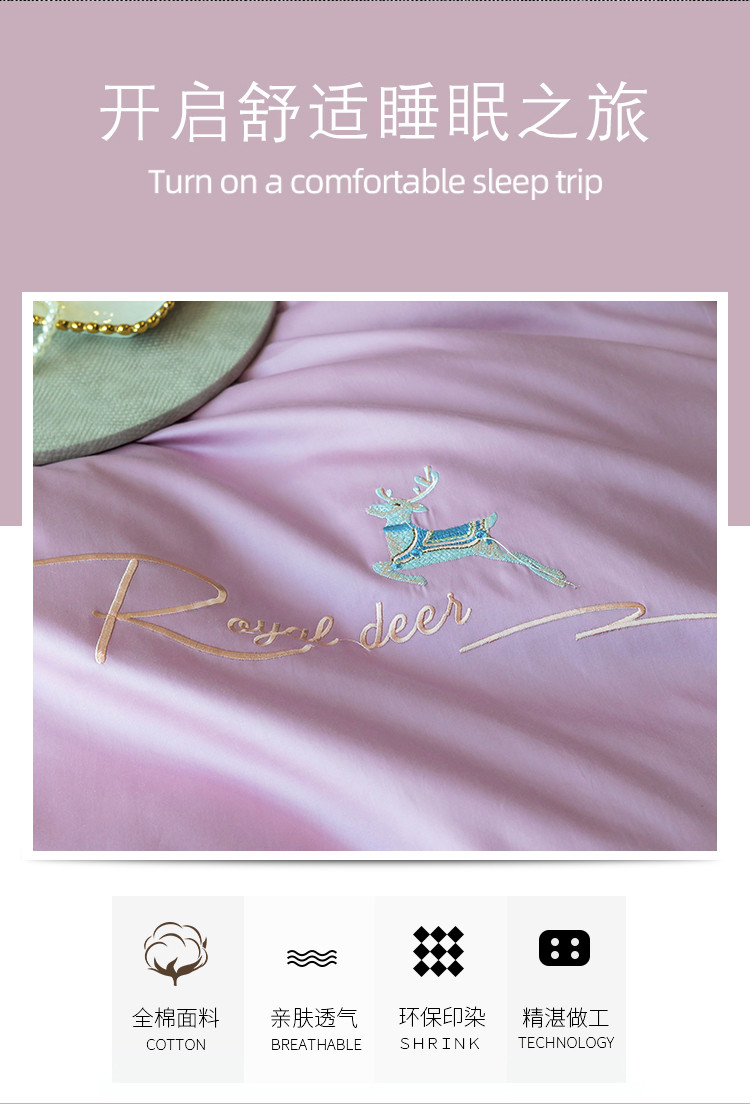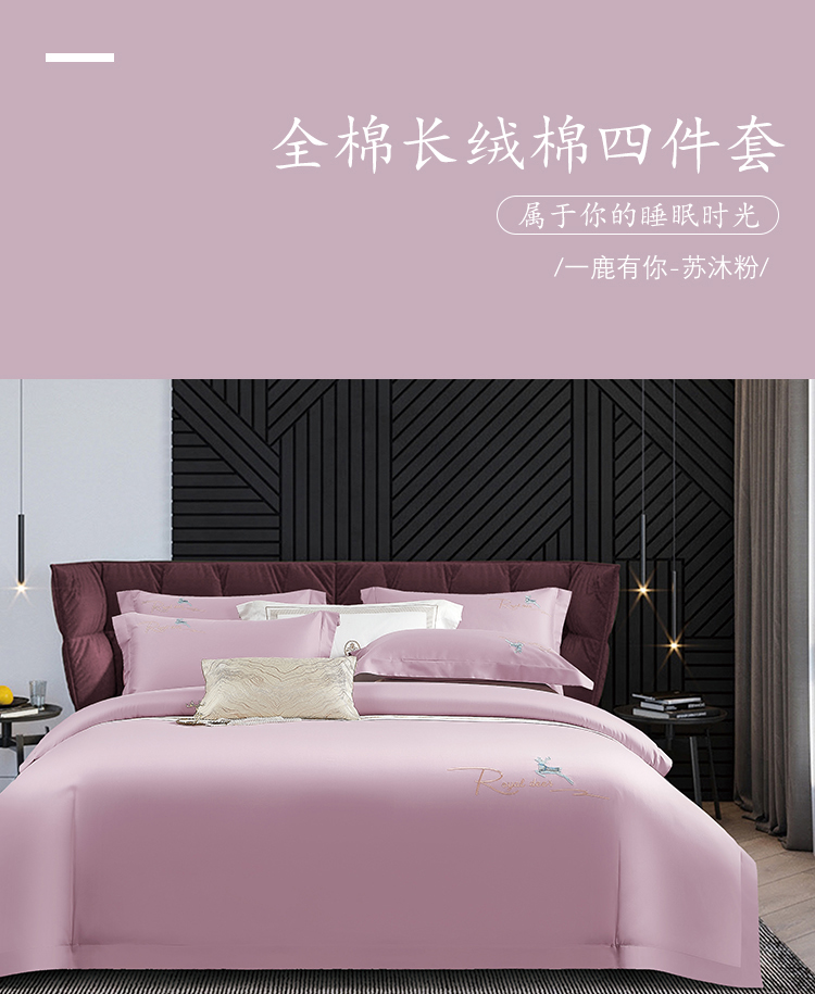 商品名称:芊寻家居 2024新款全棉长绒棉四件套 一鹿有你-苏沐粉