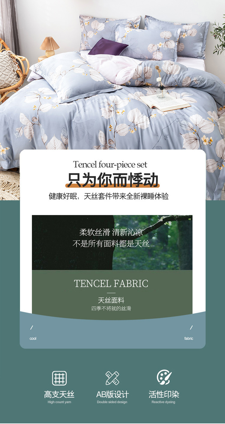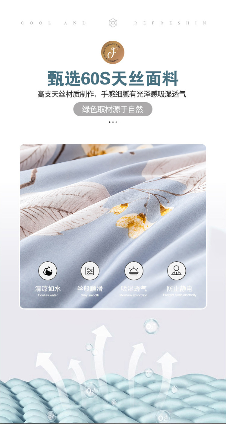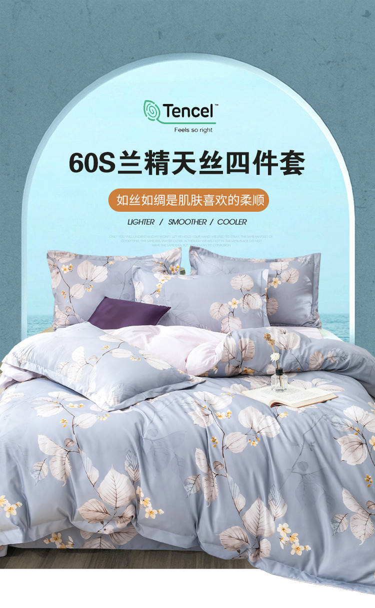 商品名称:氧家 2022新款60支兰精天丝印花四件套 爱菲拉尔