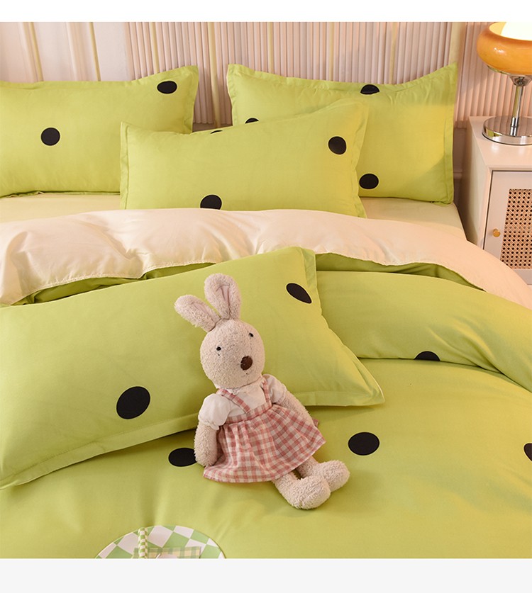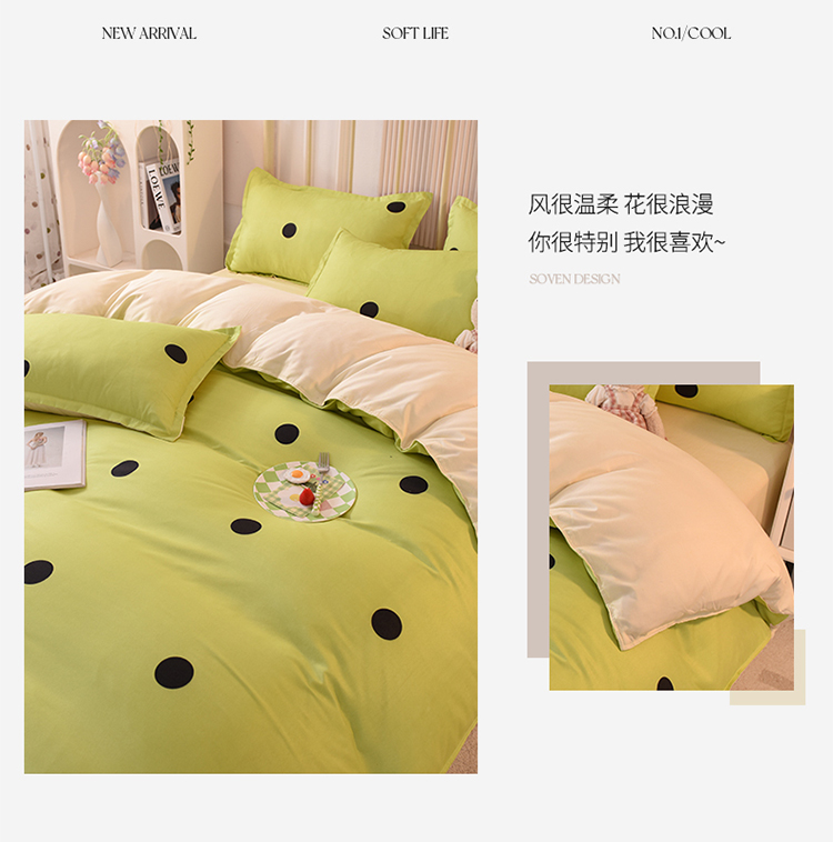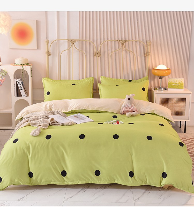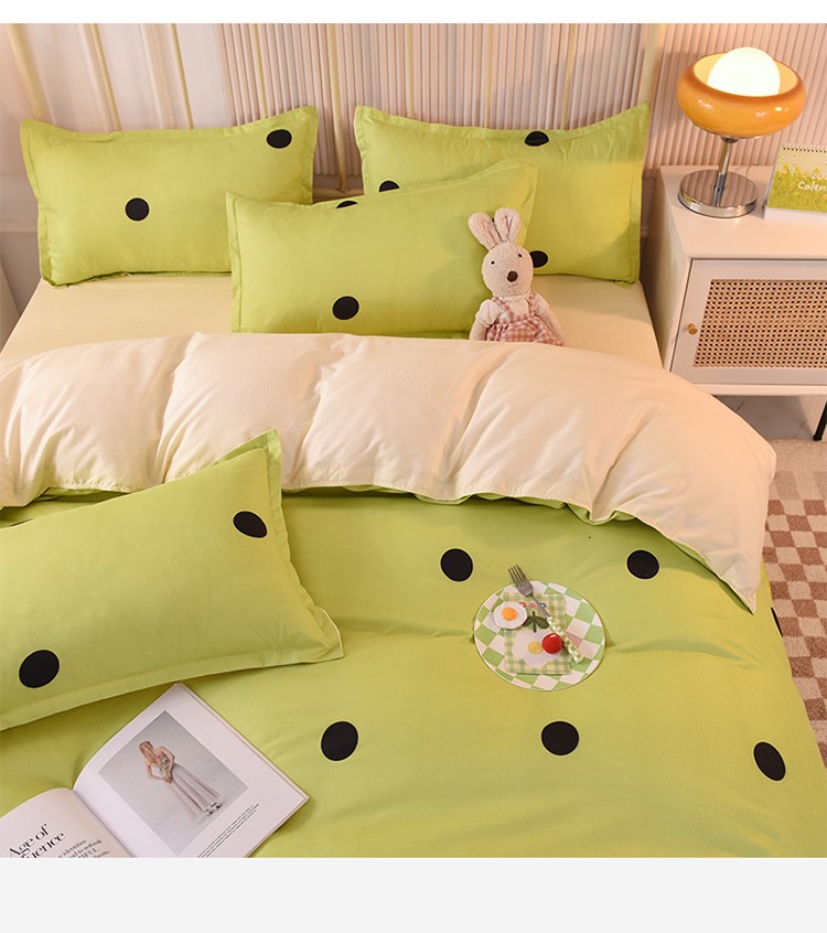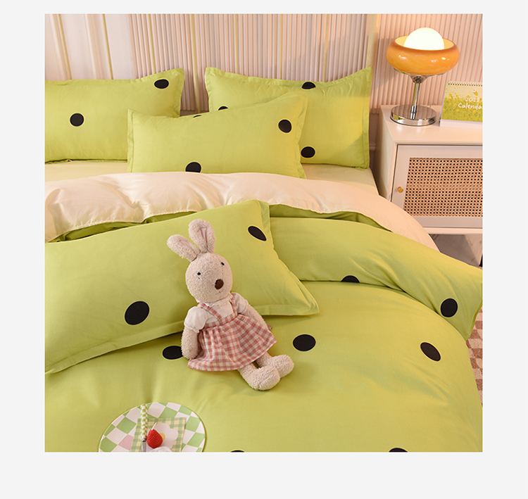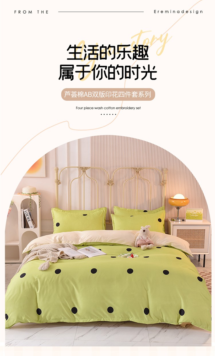 妖妖家纺 2023新款芦荟棉AB双版印花四件套 波点绿