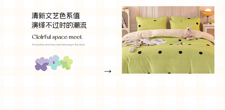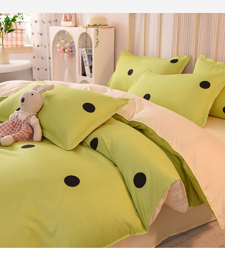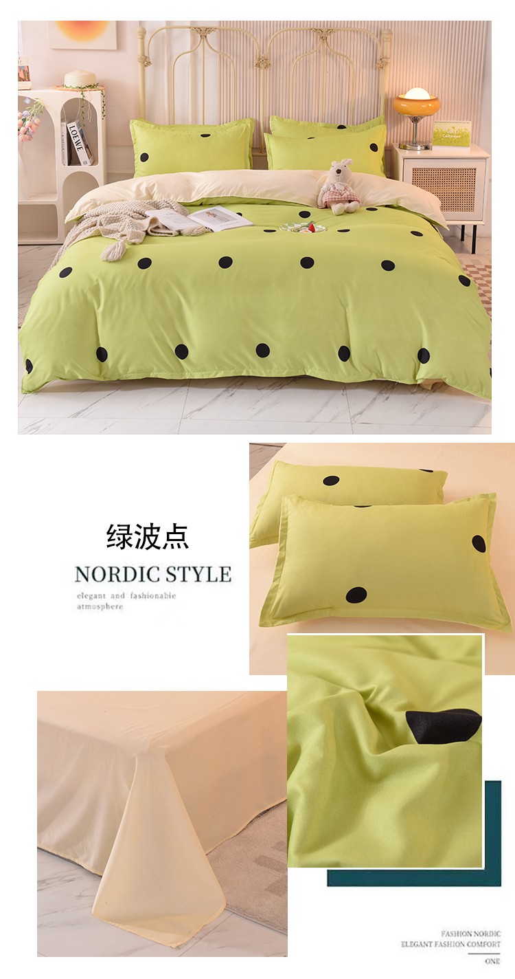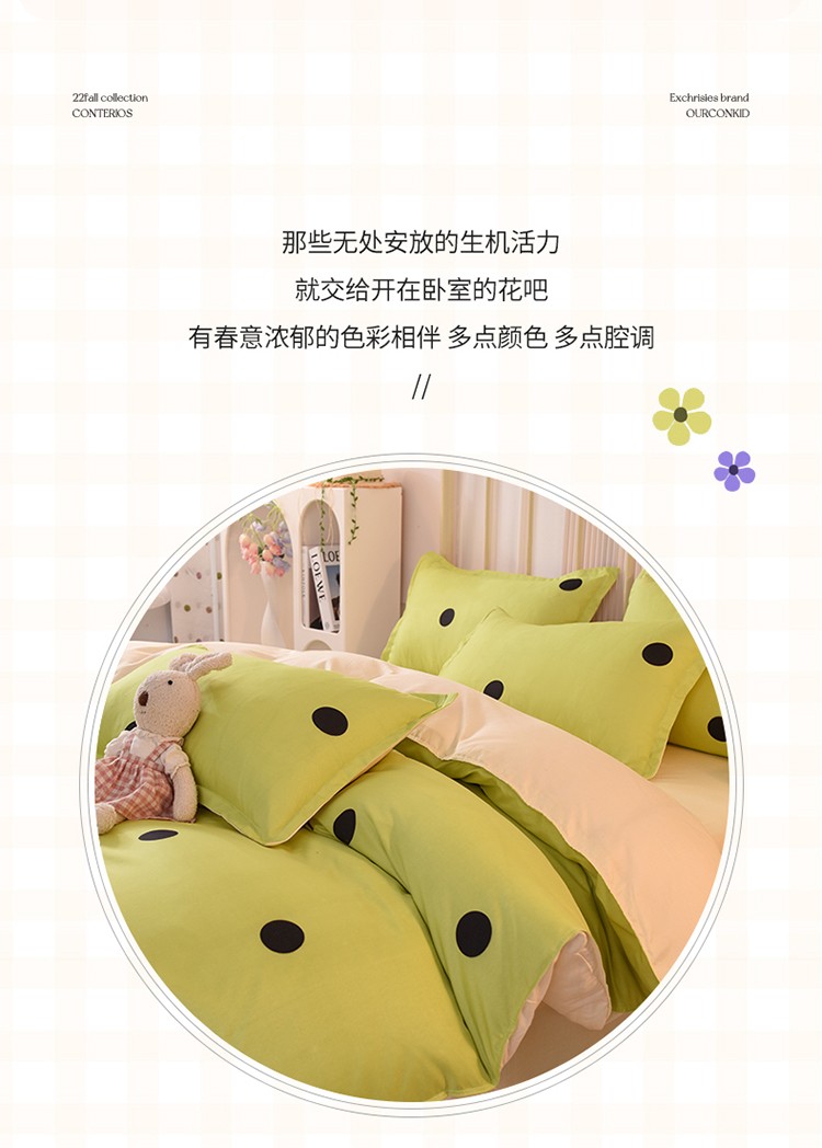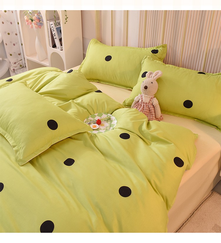 妖妖家纺 2023新款芦荟棉AB双版印花四件套 波点绿