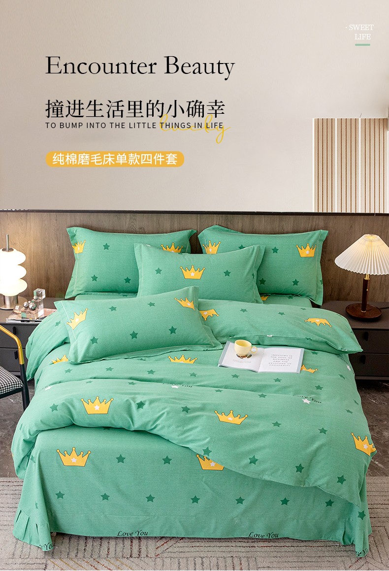 纽缦 2022新款纯棉磨毛加厚系列-床单四件套 小皇冠
