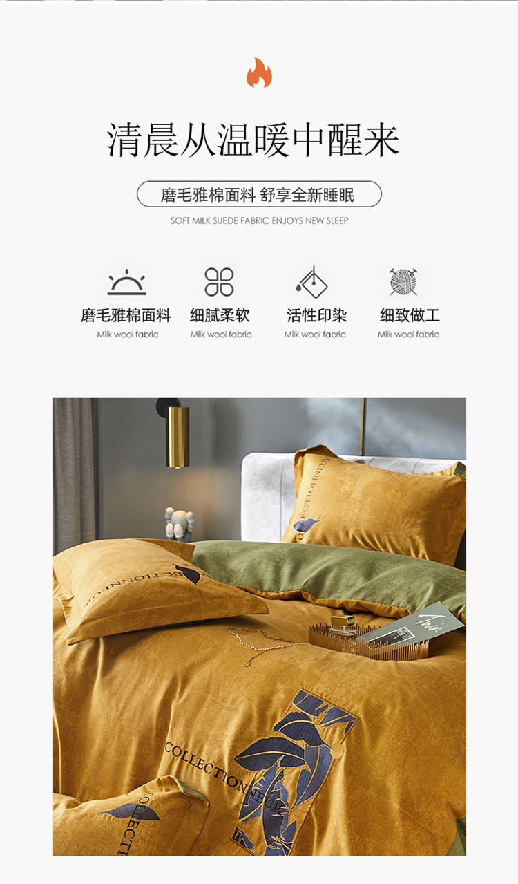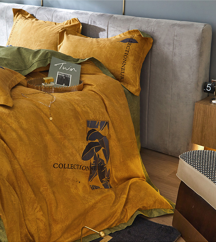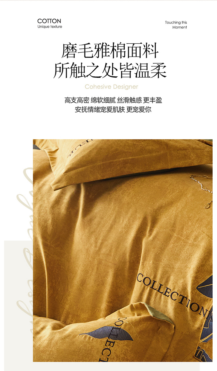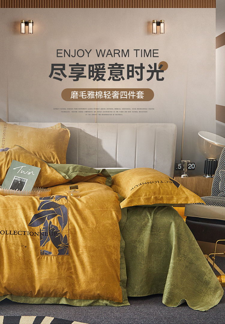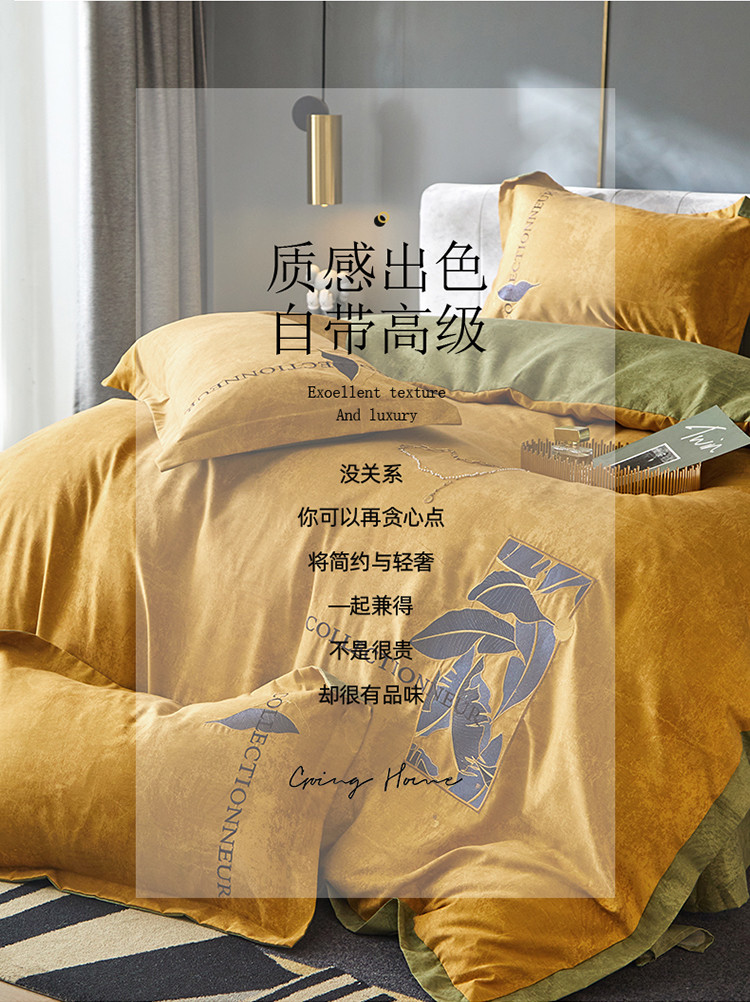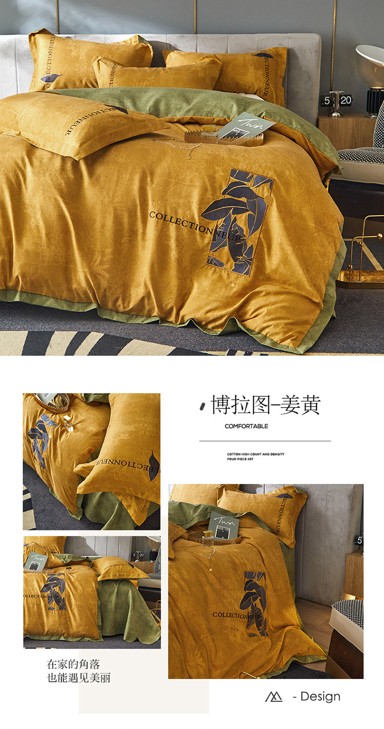 凡客家居 2022新款阳绒磨毛刺绣博拉图系列四件套 博拉图-姜黄