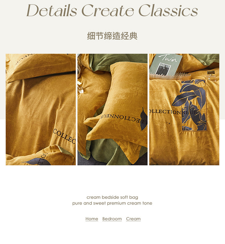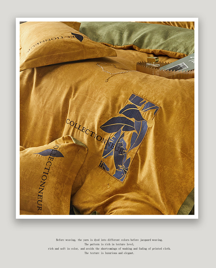 商品名称:凡客家居 2022新款阳绒磨毛刺绣博拉图系列四件套 博拉图-姜黄