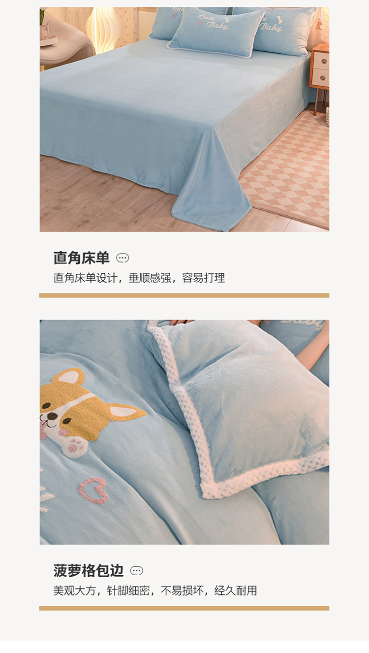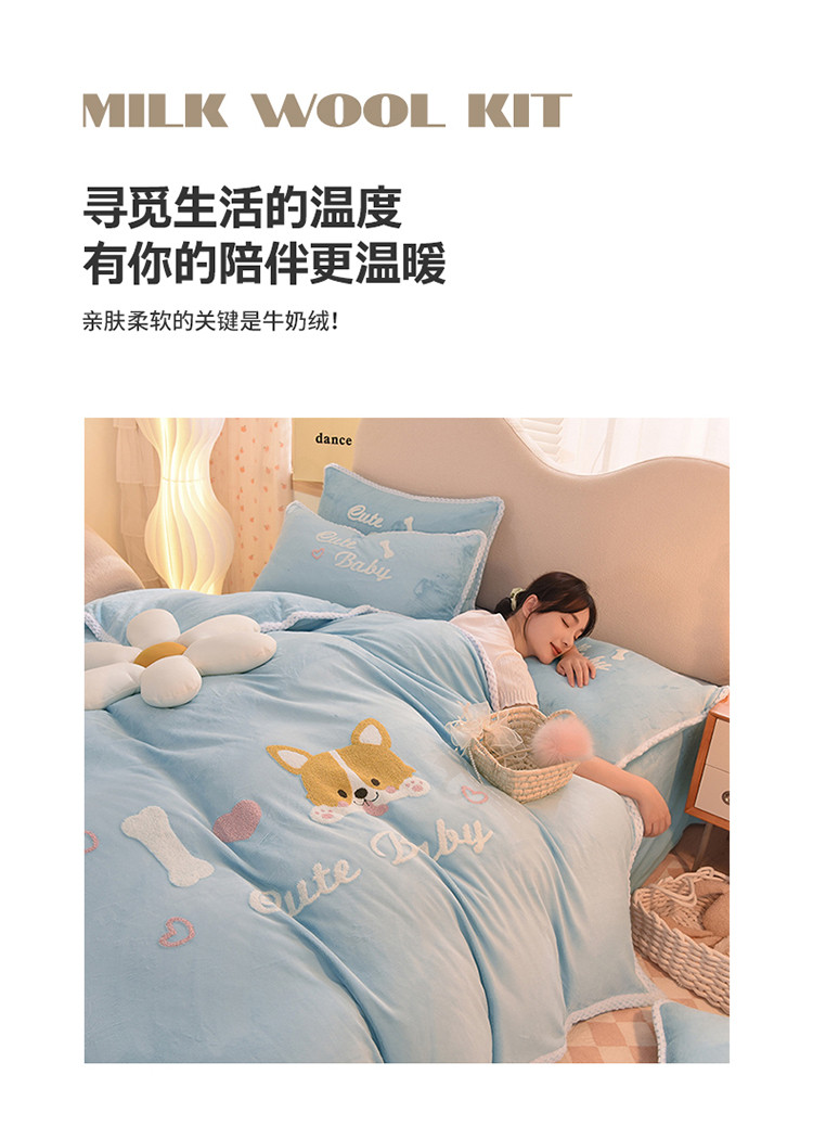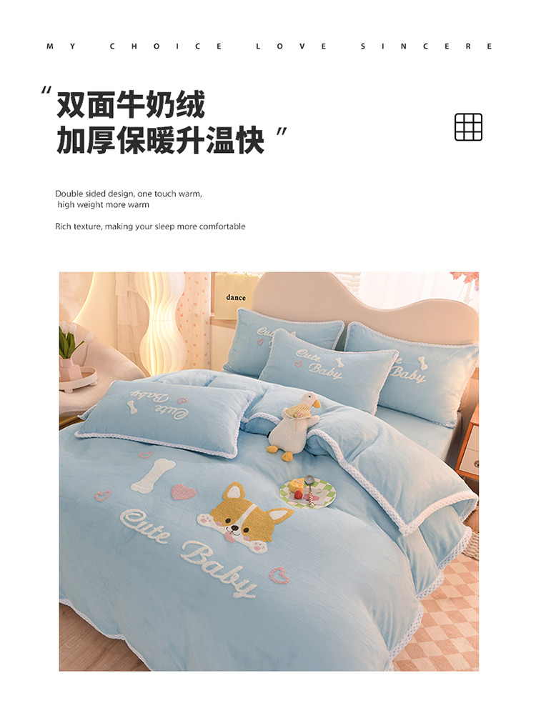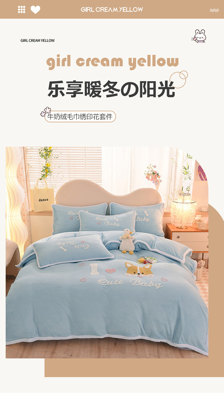 当前位置: 91家纺网 > 商品网购 > 床品套件 > 四件套 > 牛奶绒四件套 > 菲儿 2022新款毛巾绣牛奶绒四件套 旺仔-梦蓝