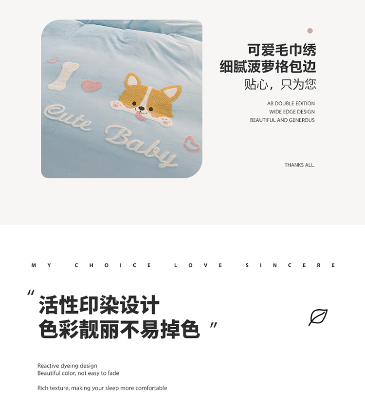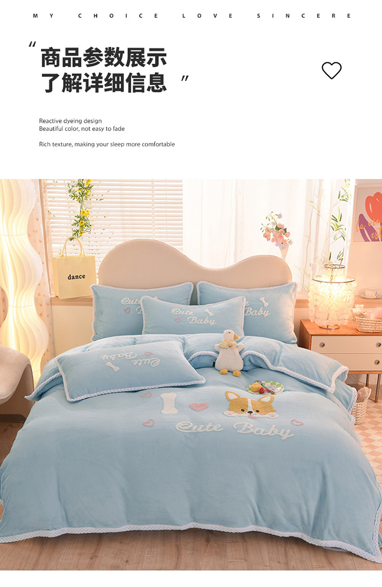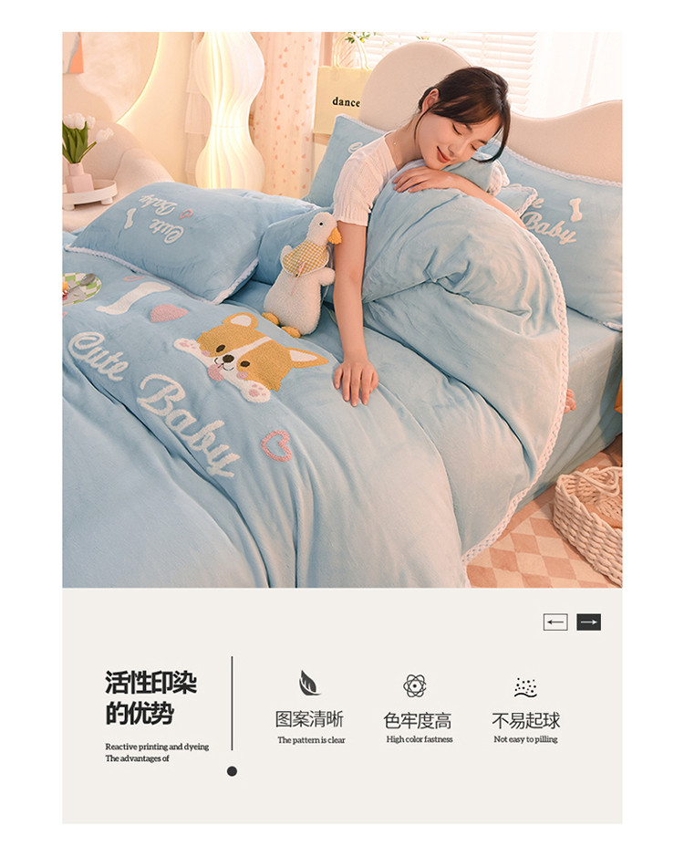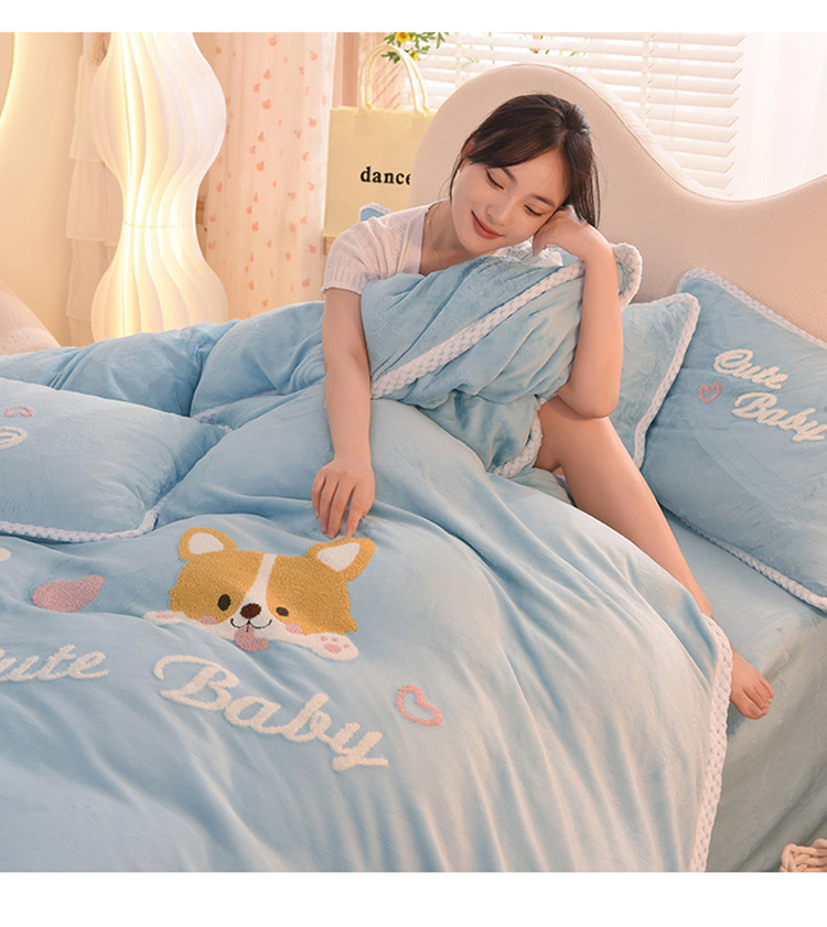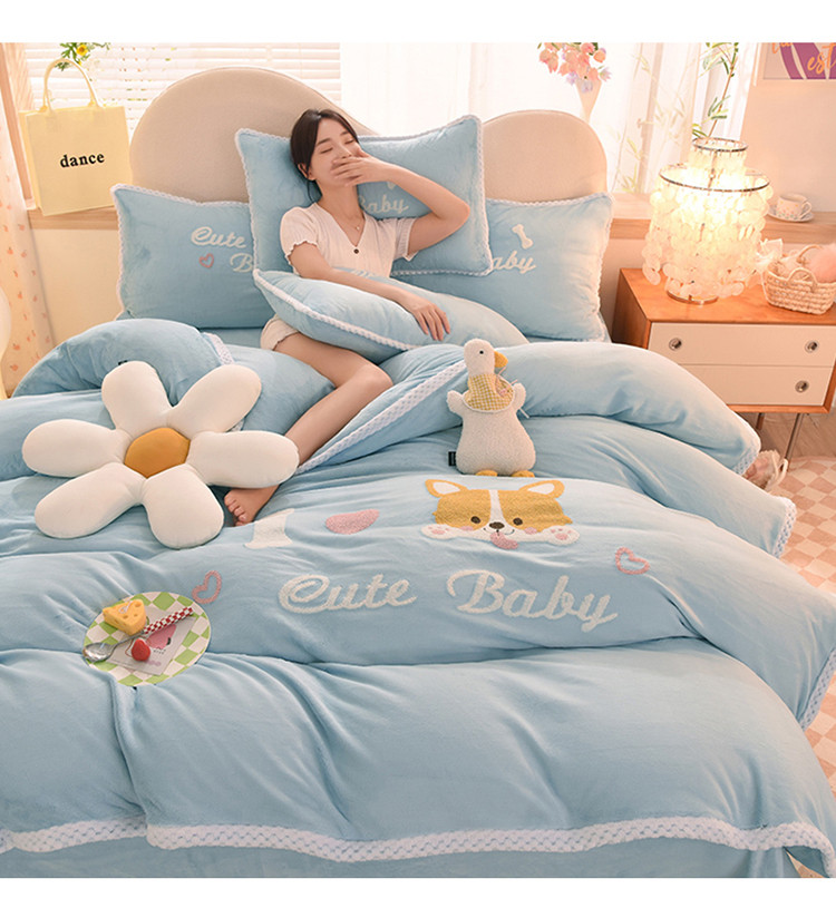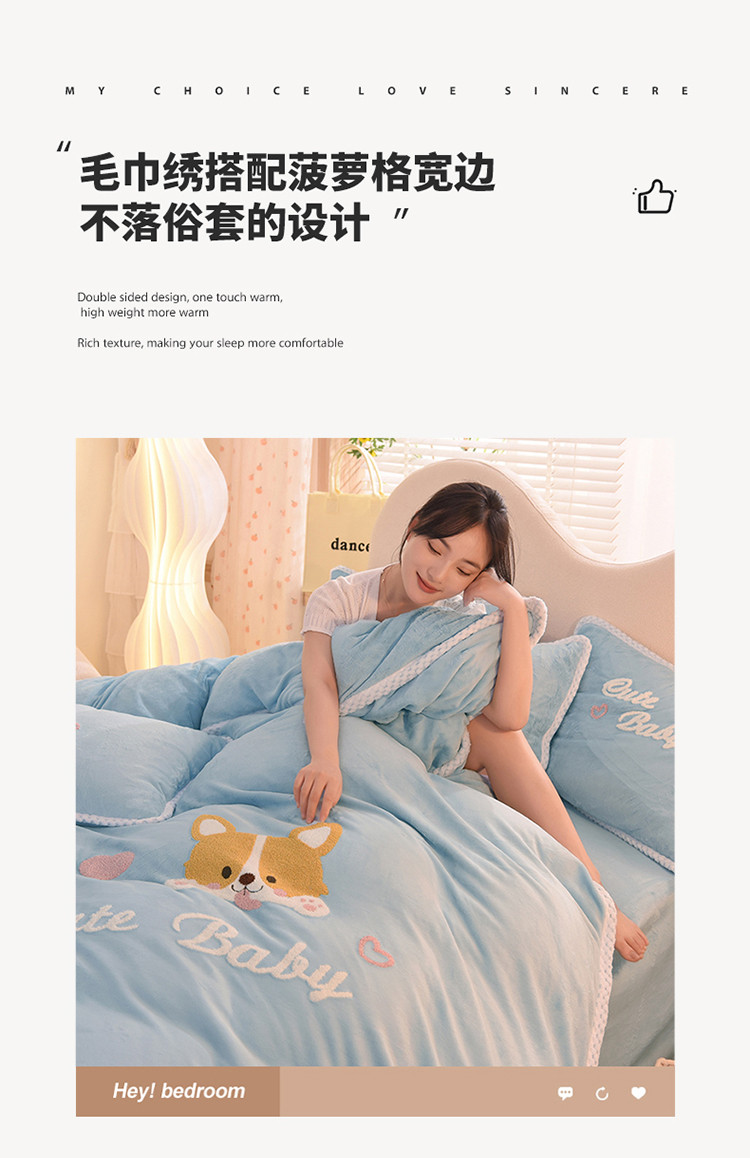 当前位置: 91家纺网 > 商品网购 > 床品套件 > 四件套 > 牛奶绒四件套 > 菲儿 2022新款毛巾绣牛奶绒四件套 旺仔-梦蓝