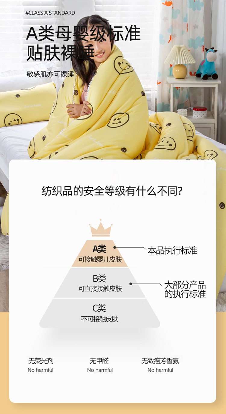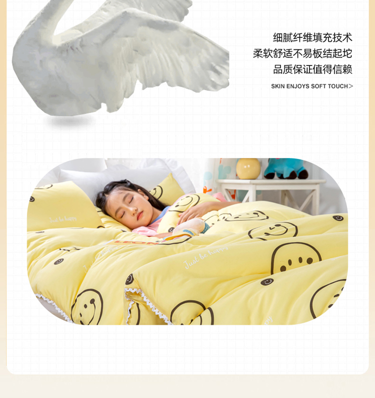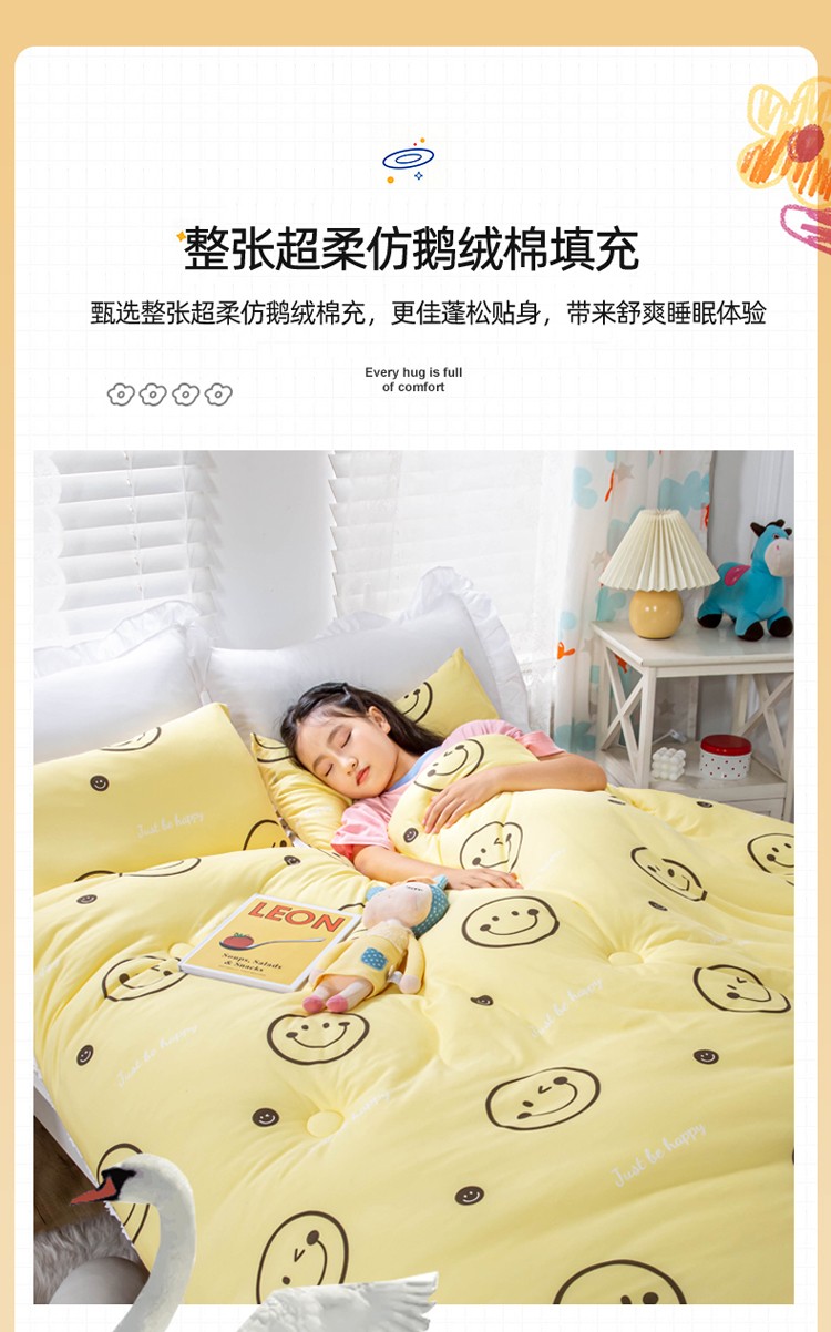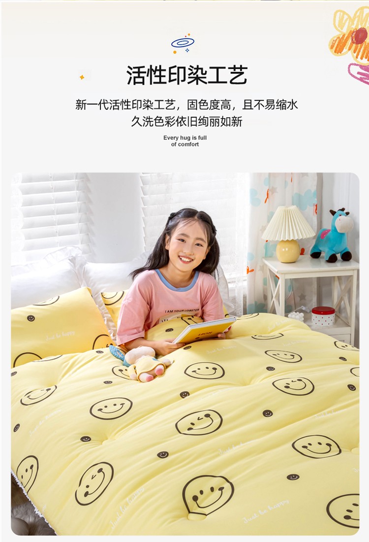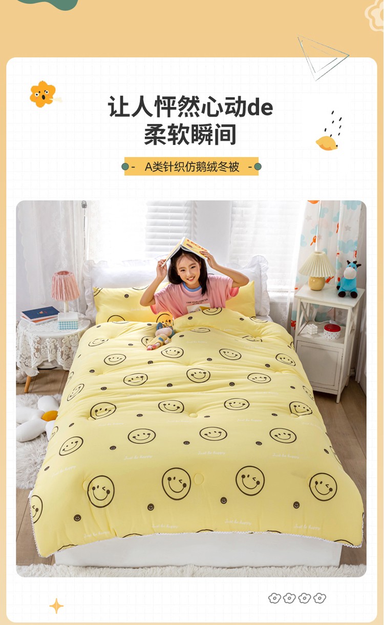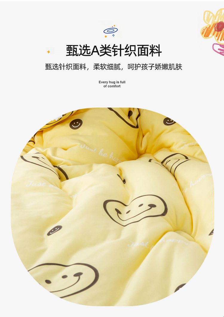 • 91家纺网 家纺一手货源 找家纺 天瑜家纺2023新款A类针织棉冬被儿童冬被 笑脸黄