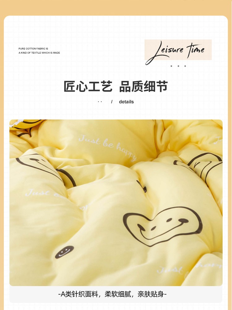 当前位置: 91家纺网 > 商品网购 > 被子 > 冬被 > 天瑜家纺2023新款A类针织棉冬被儿童冬被 笑脸黄