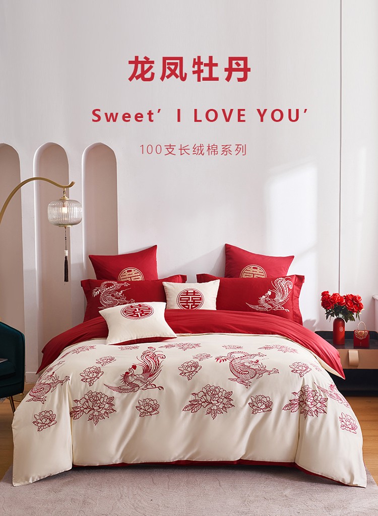 2022甜咪咪直播爆款100支长绒棉四件套-家居婚庆龙凤牡丹