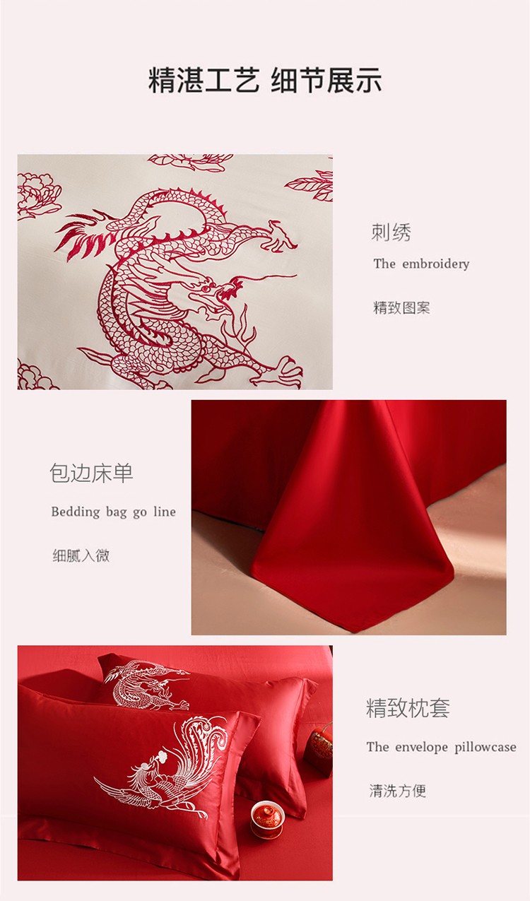 (总)甜咪咪婚庆 2025新品长绒棉全棉大龙凤刺绣婚庆结婚四件套多件套 小红书推荐,龙凤吉祥,龙凤情缘,游龙戏凤