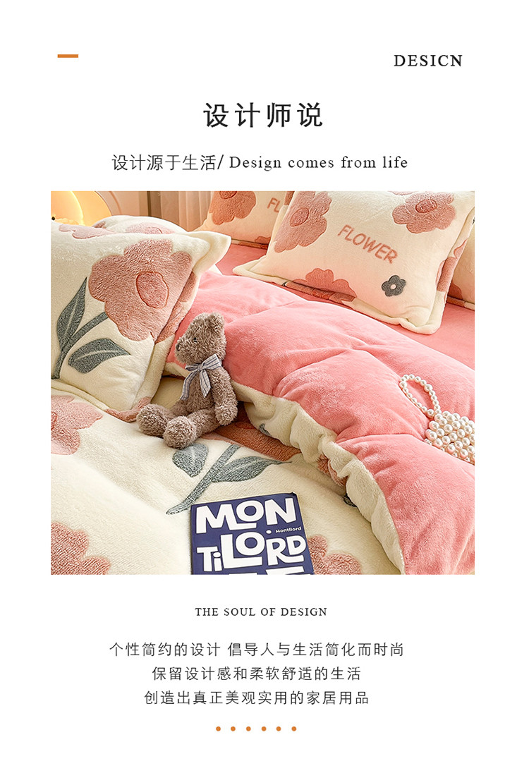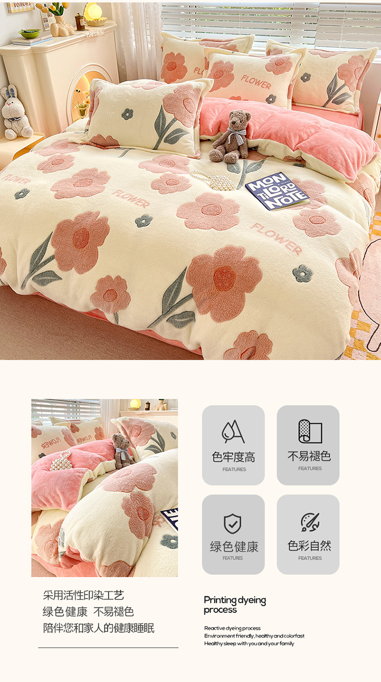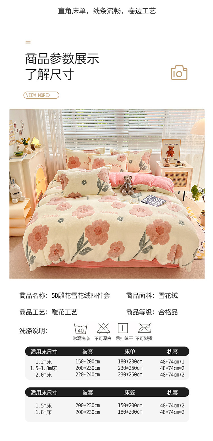 商品名称:苏拉 2023新款秋冬新款雪花绒牛奶绒四件套 萱花
