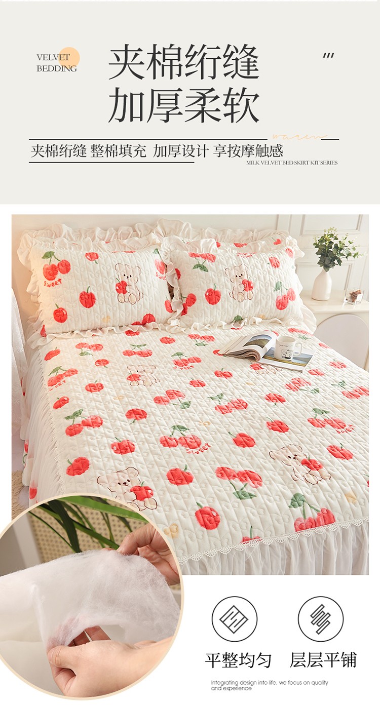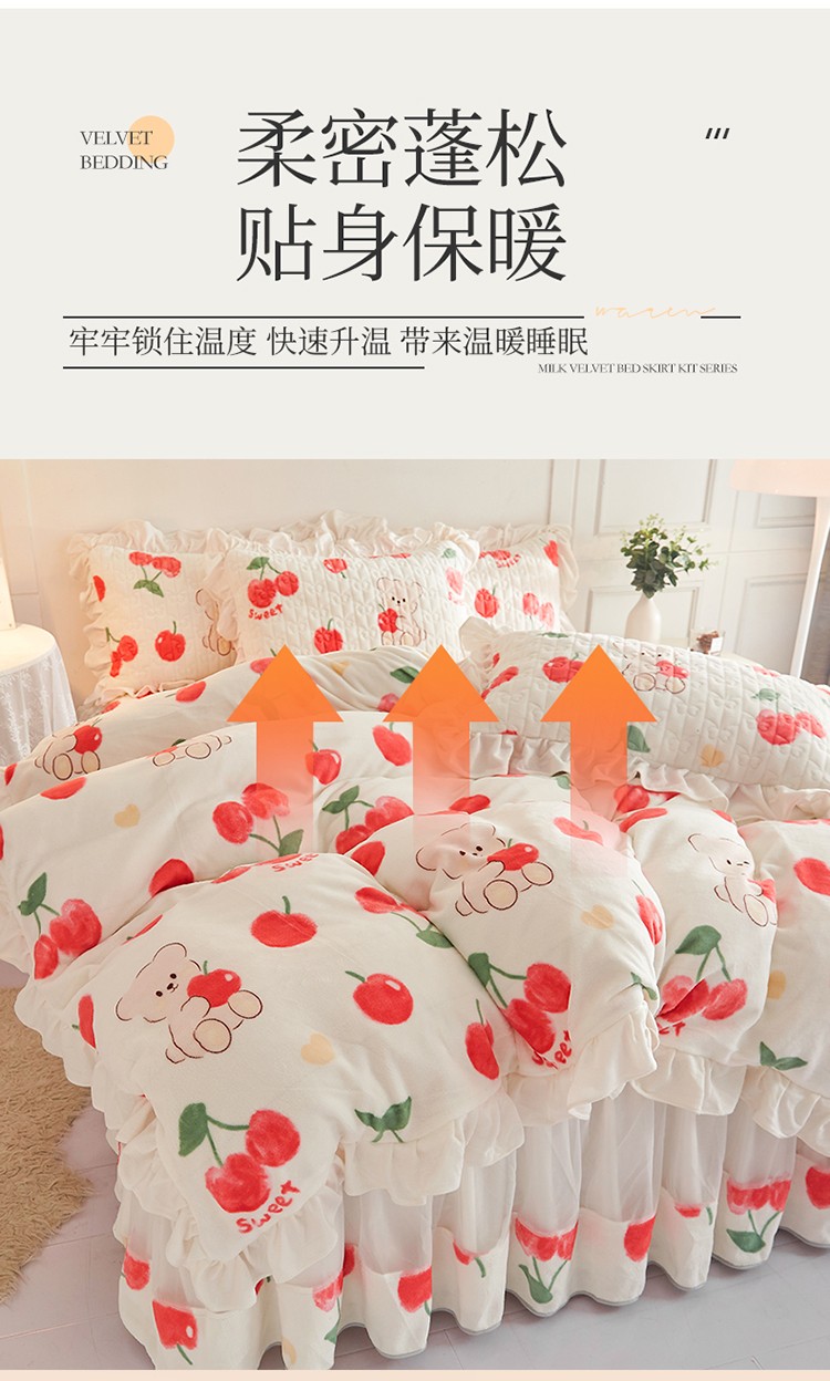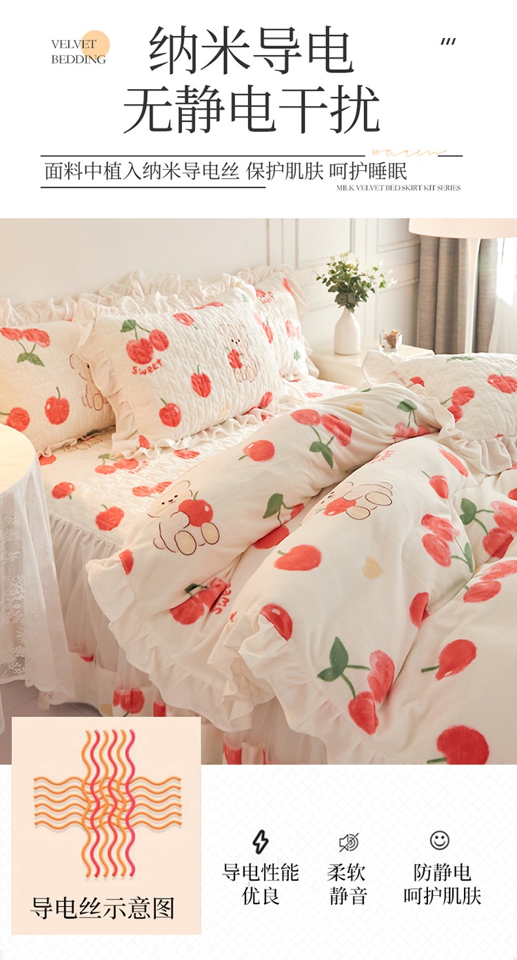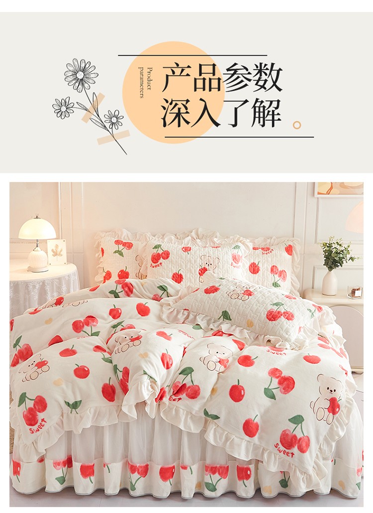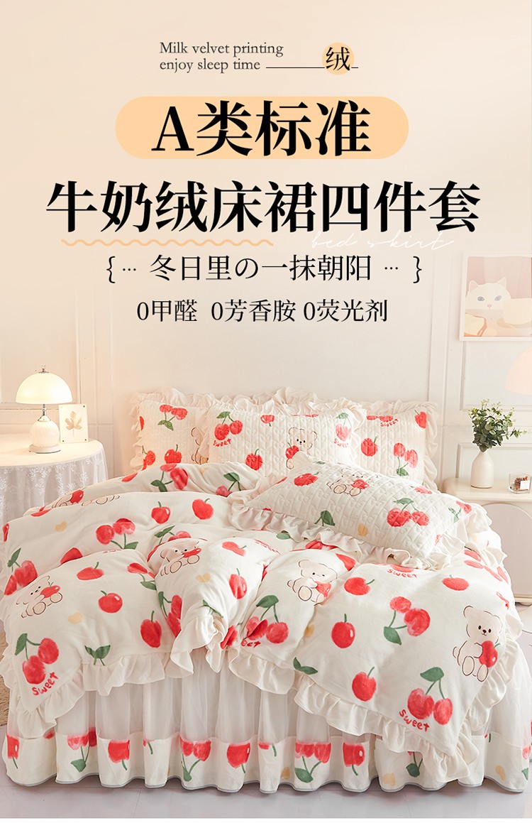 • 91家纺网 家纺一手货源 找家纺 宜凡2022新款A类牛奶绒印花床裙四件套 甜蜜果园