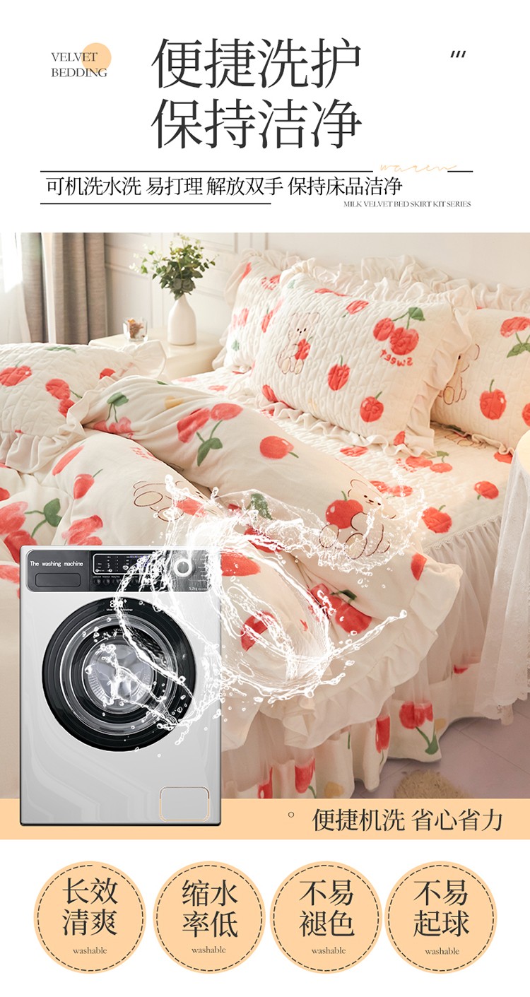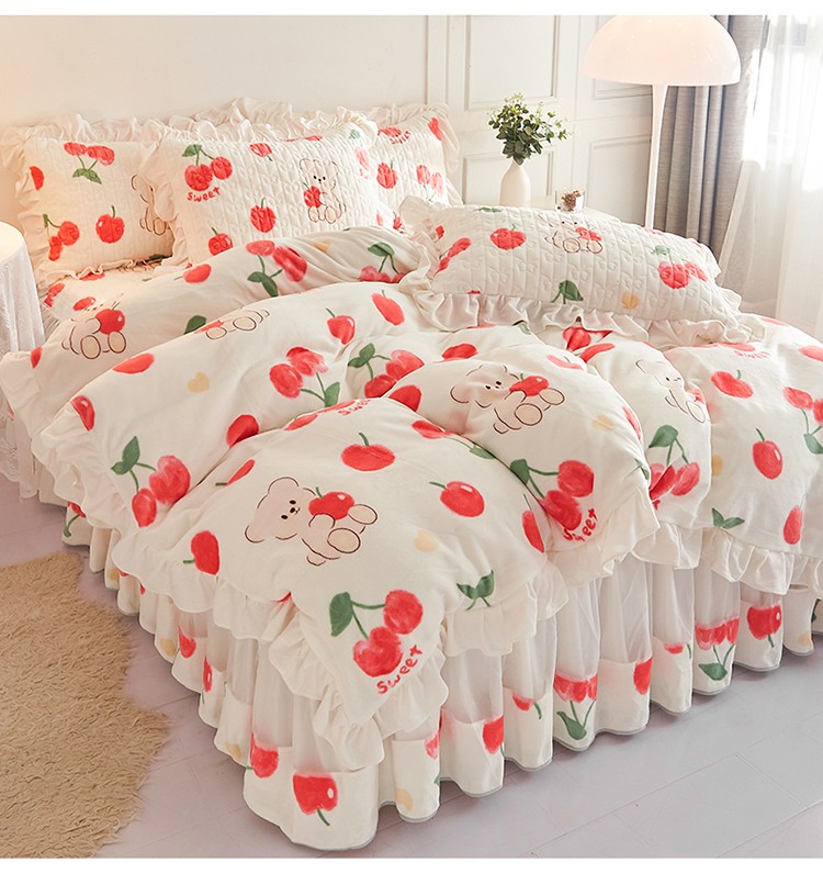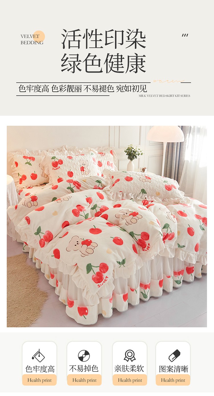 宜凡2022新款A类牛奶绒印花床裙四件套 甜蜜果园