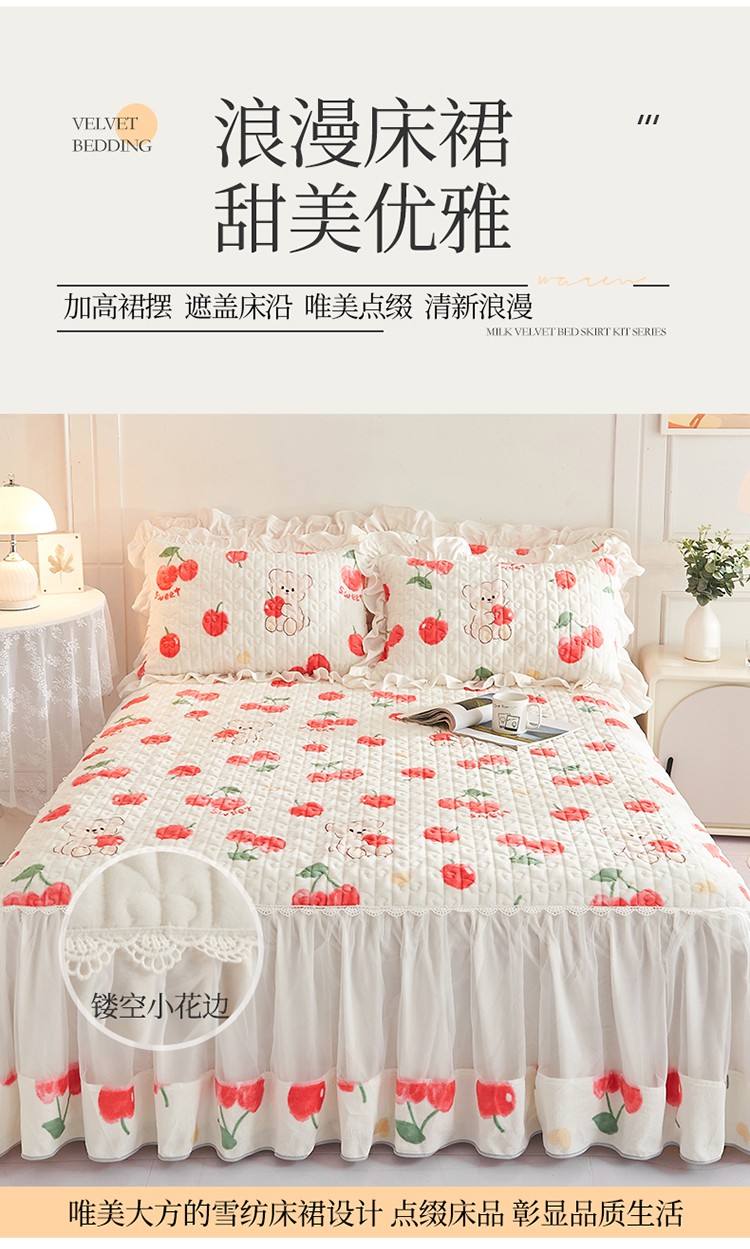 (总)宜凡家纺 2025新款兔绒提花牛奶绒夹棉床裙四件套,爱心 少女粉,爱心 粉紫,爱心 驼色,蝶舞 大红,蝶舞 米色,蝶舞 浅紫,蝶舞 玉色,简爱 苍青,简爱 豆沙紫,简爱 玉色,樱桃 苍青,樱桃 豆沙紫,樱桃 奶油白