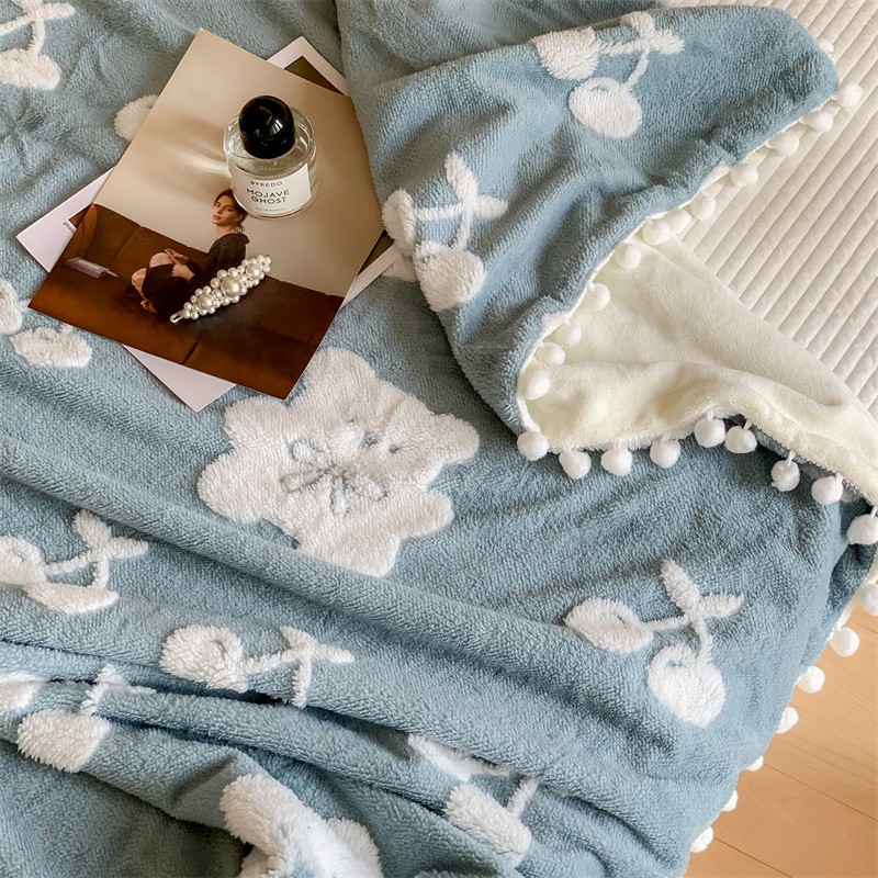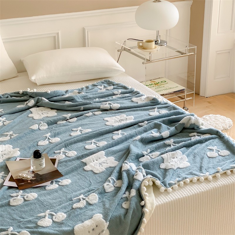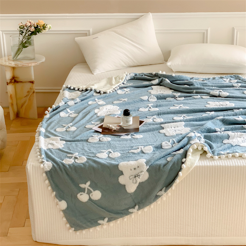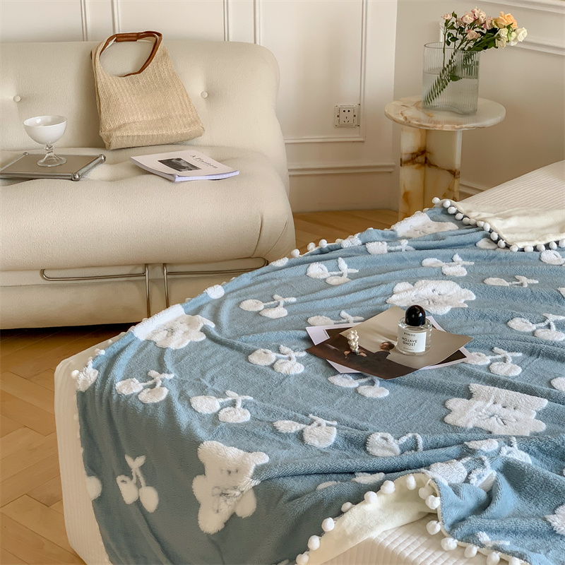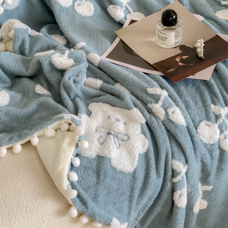 洋铭区 2022新款a版舒棉绒b版牛奶绒毯子-樱桃小熊 樱桃小熊蓝