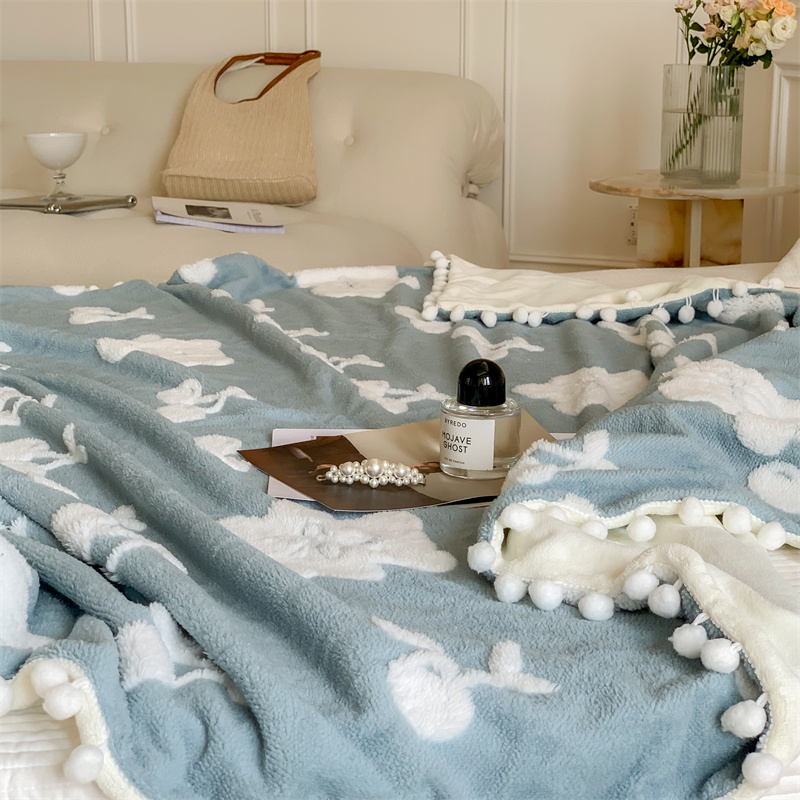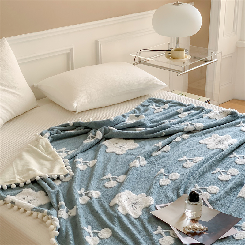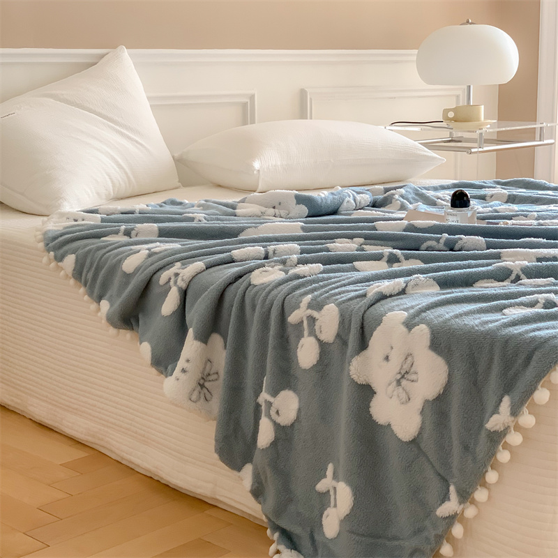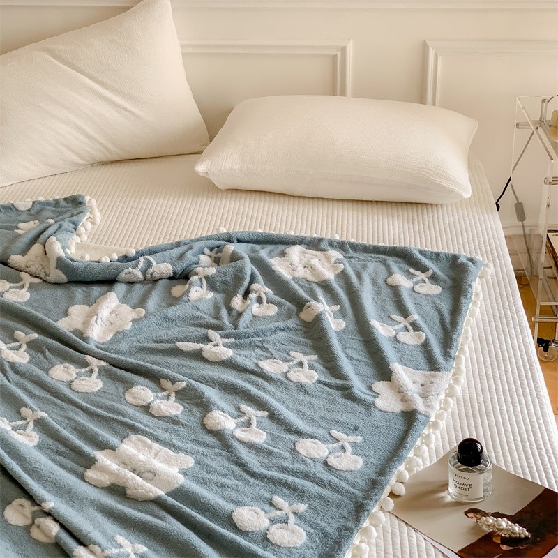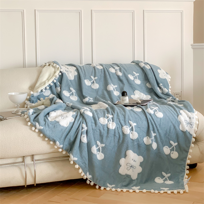 洋铭区 2022新款a版舒棉绒b版牛奶绒毯子-樱桃小熊 樱桃小熊蓝