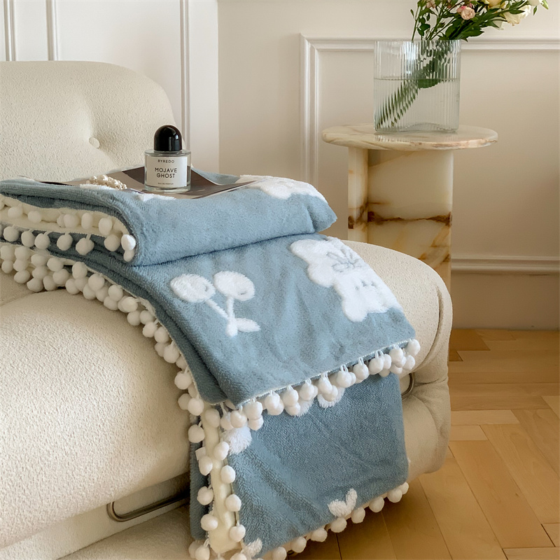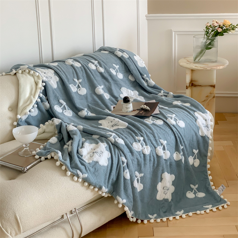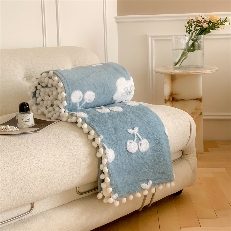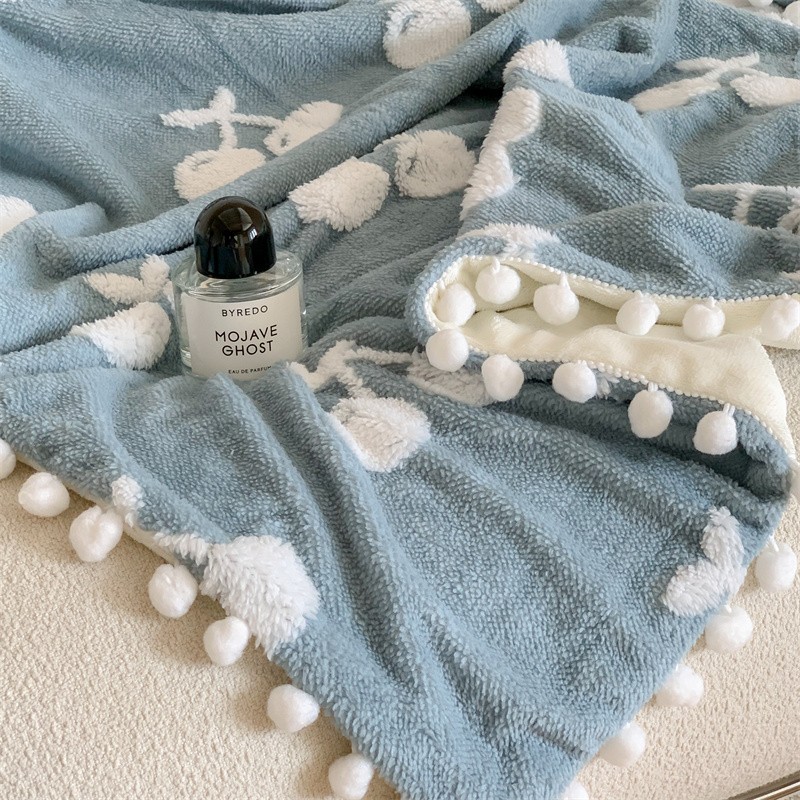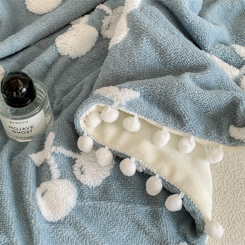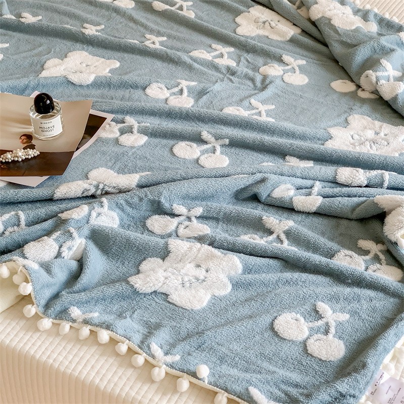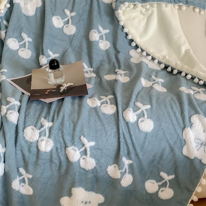 商品名称:洋铭区 2022新款a版舒棉绒b版牛奶绒毯子-樱桃小熊 樱桃小熊蓝