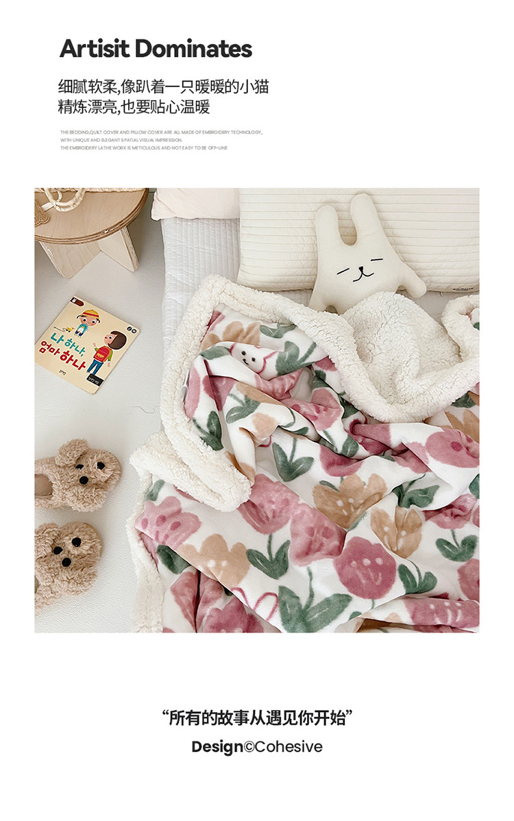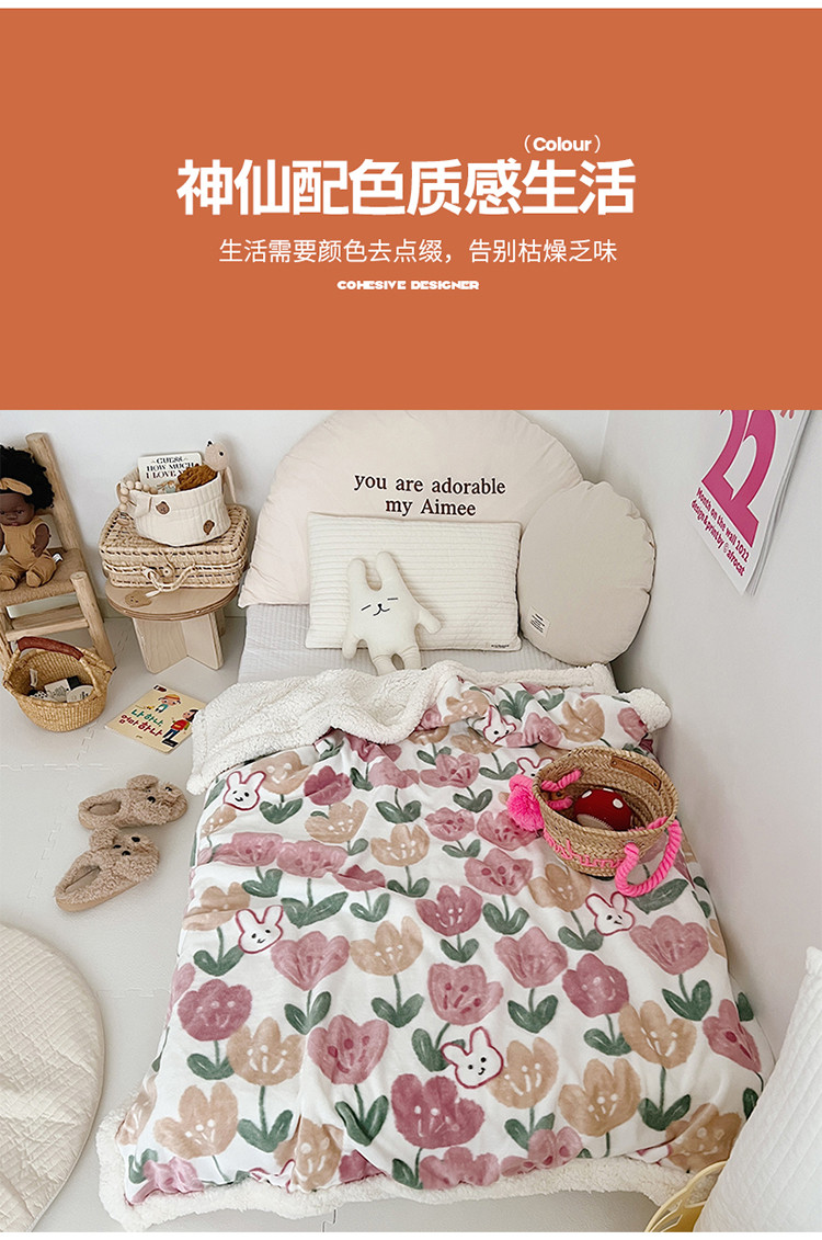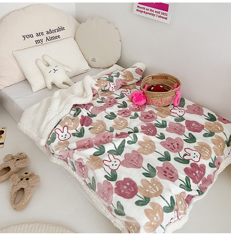 航途席业 2023新款软绵绵牛奶绒羊羔绒毛毯 郁金香兔
