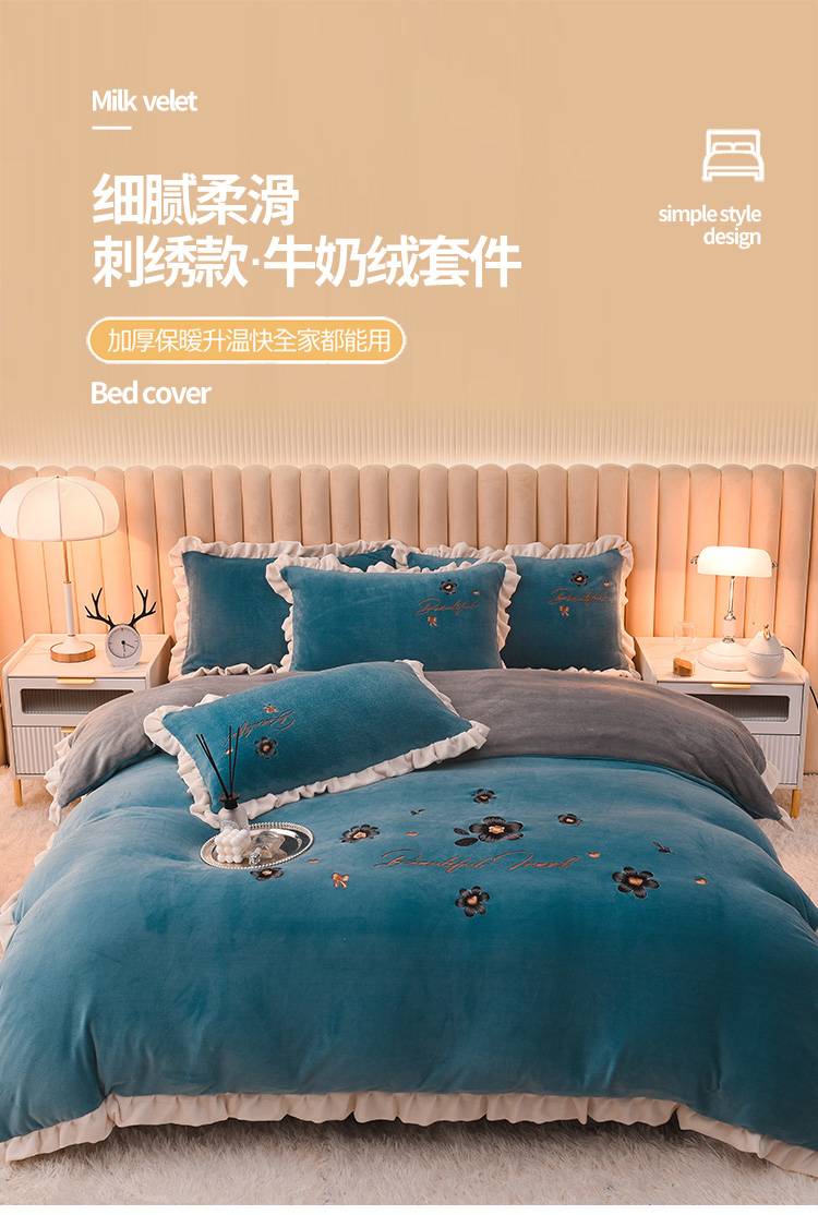 商品名称:芃成 2022新款加厚保暖牛奶绒绣花四件套 花漾 宾利兰
