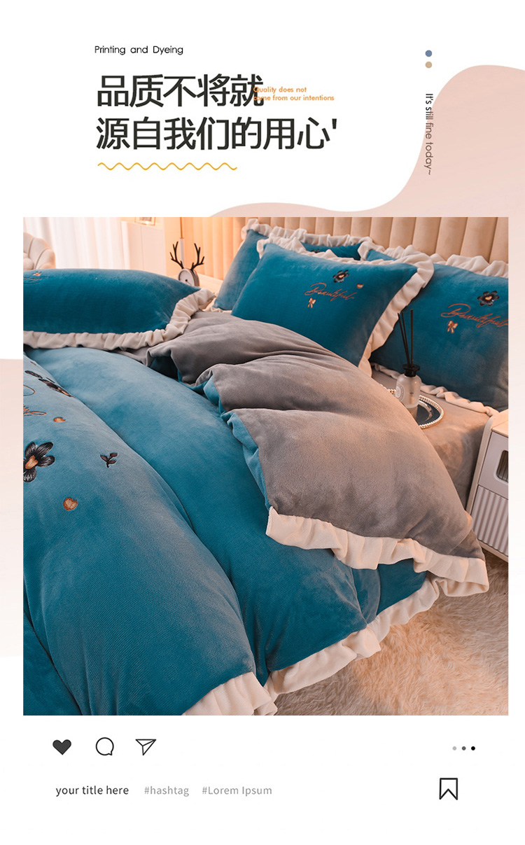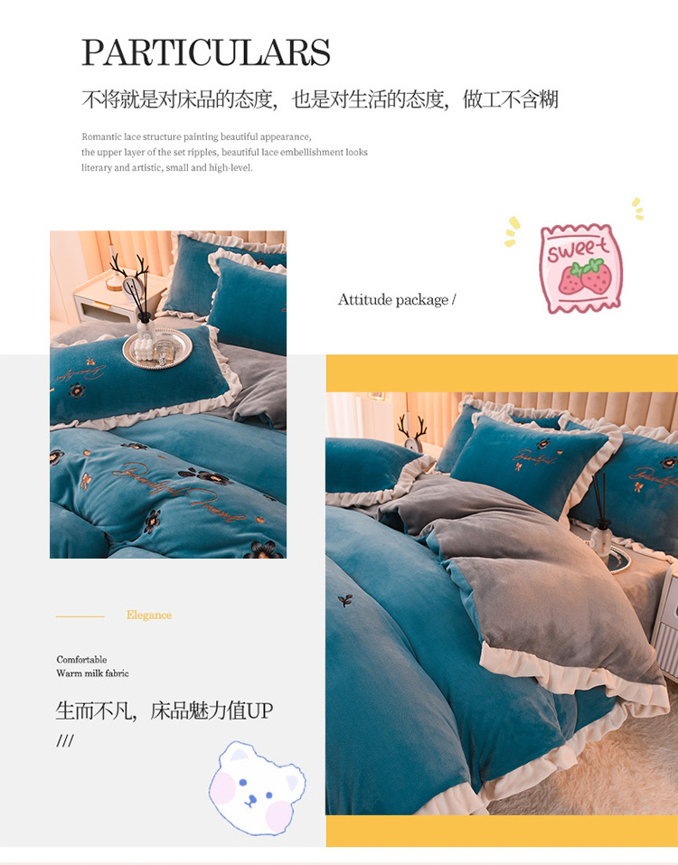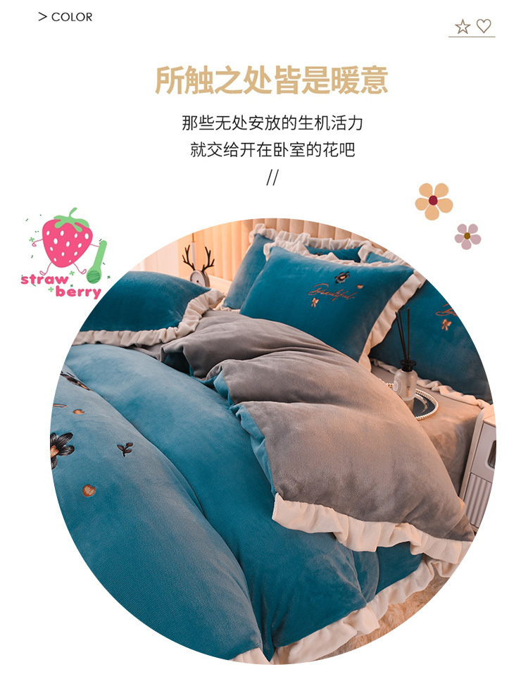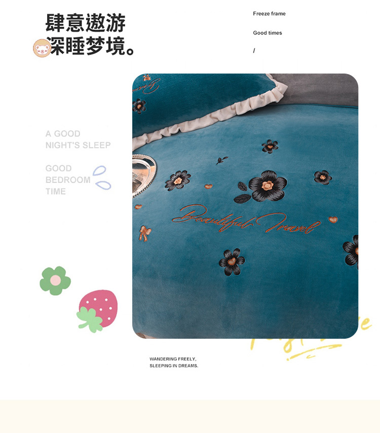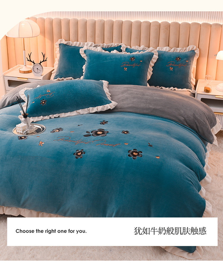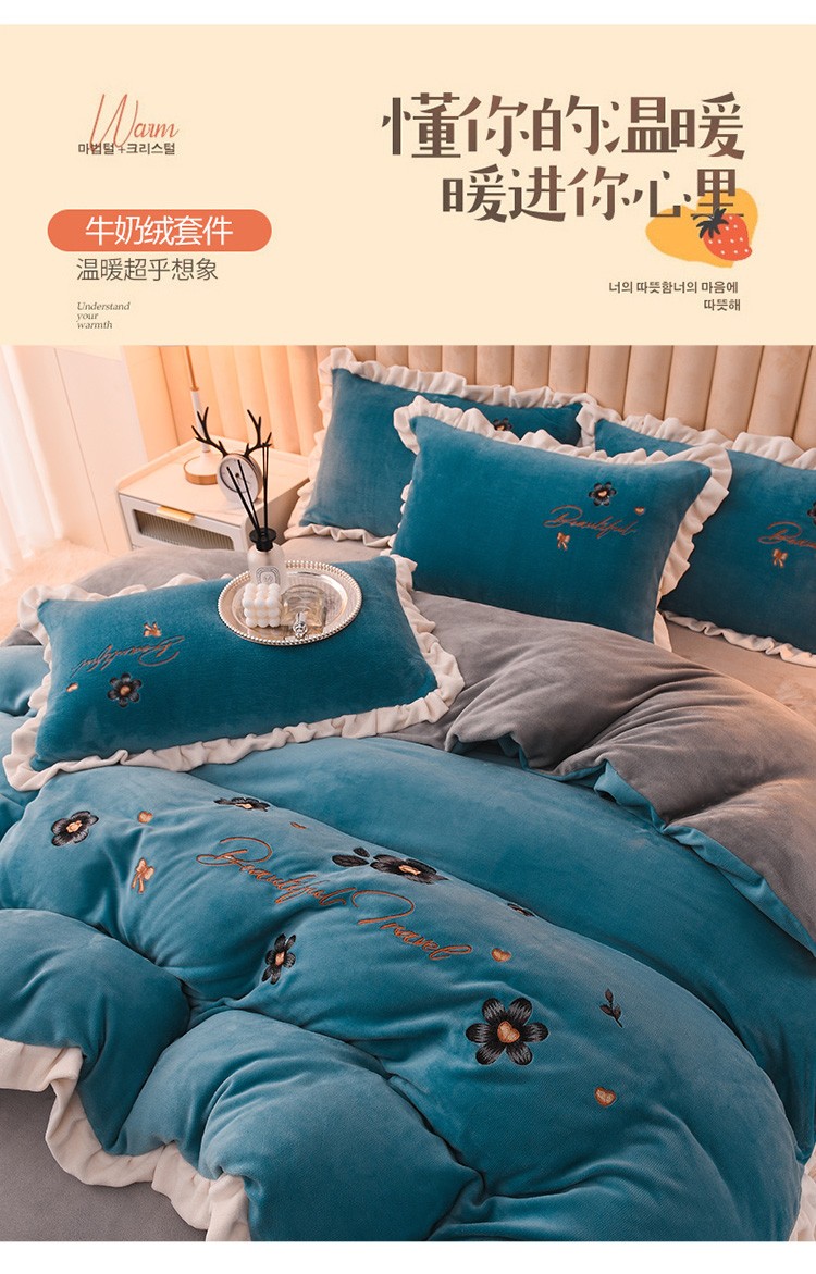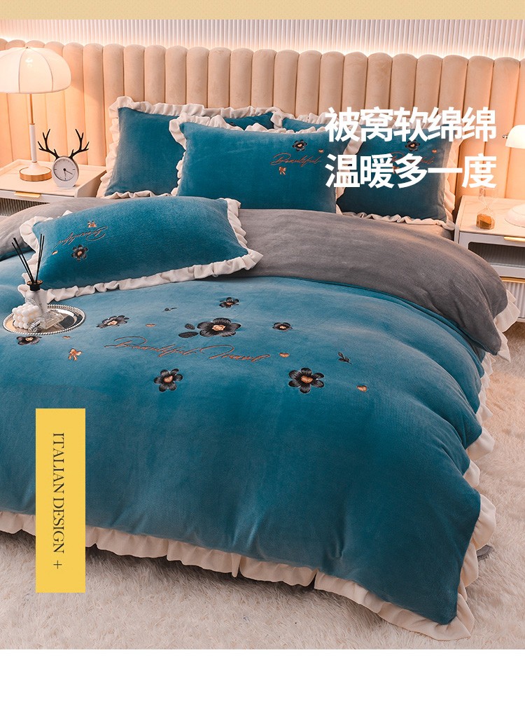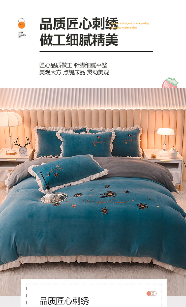 芃成 2022新款加厚保暖牛奶绒绣花四件套 花漾 宾利兰