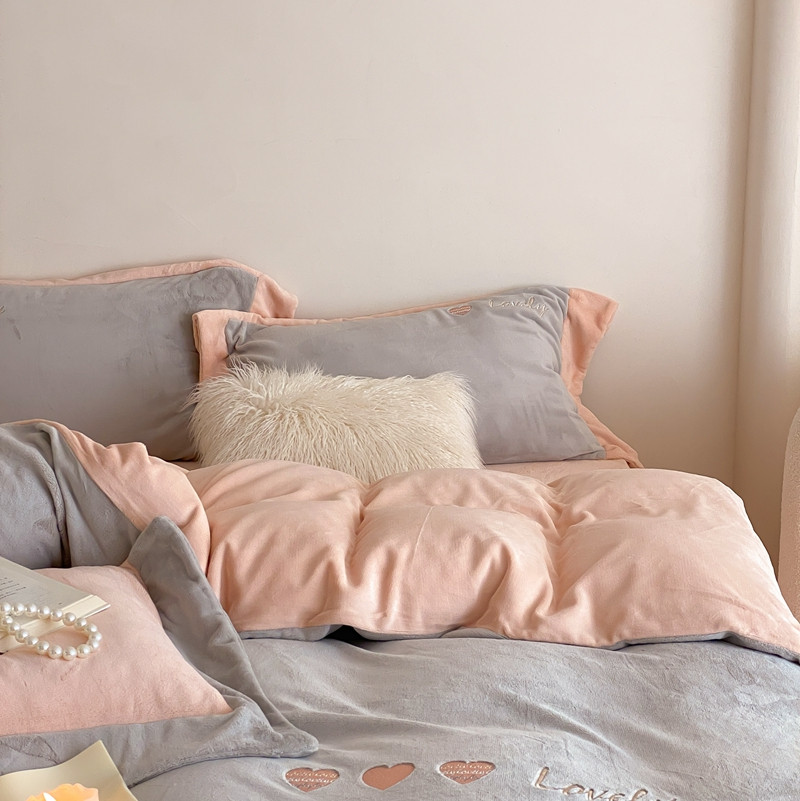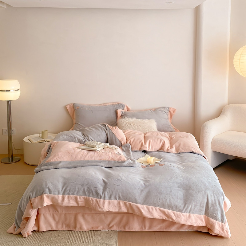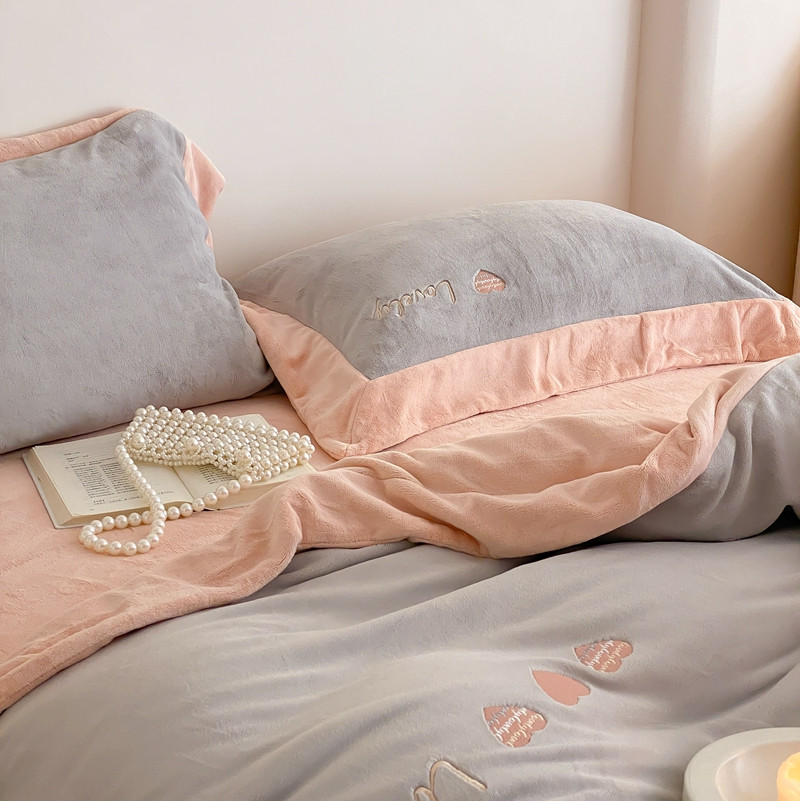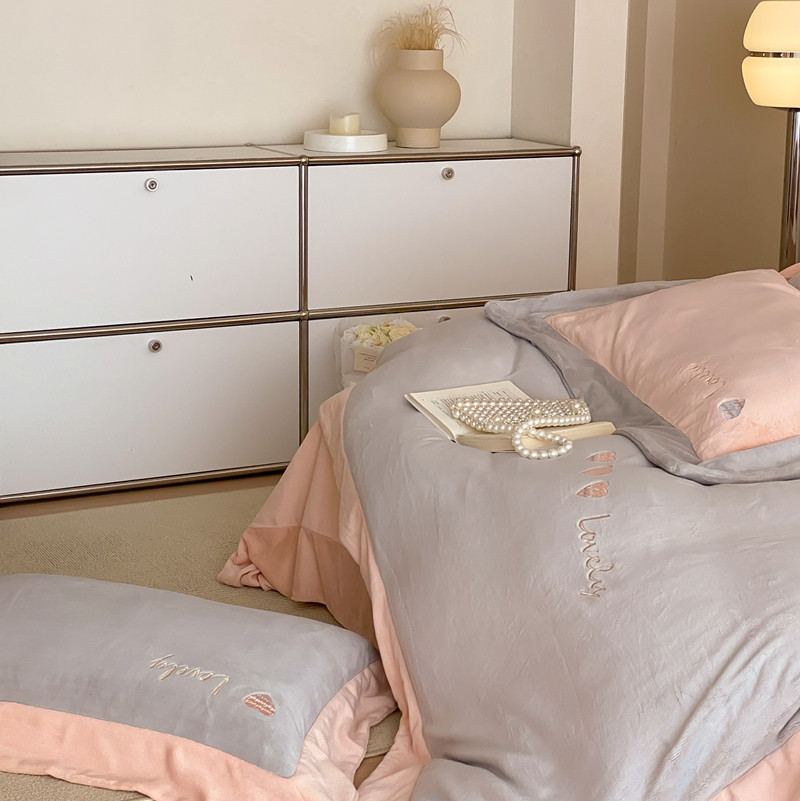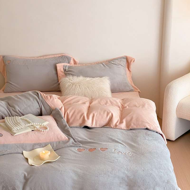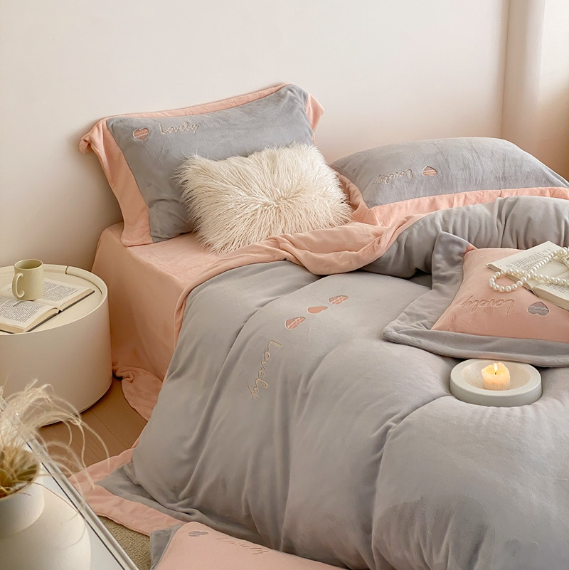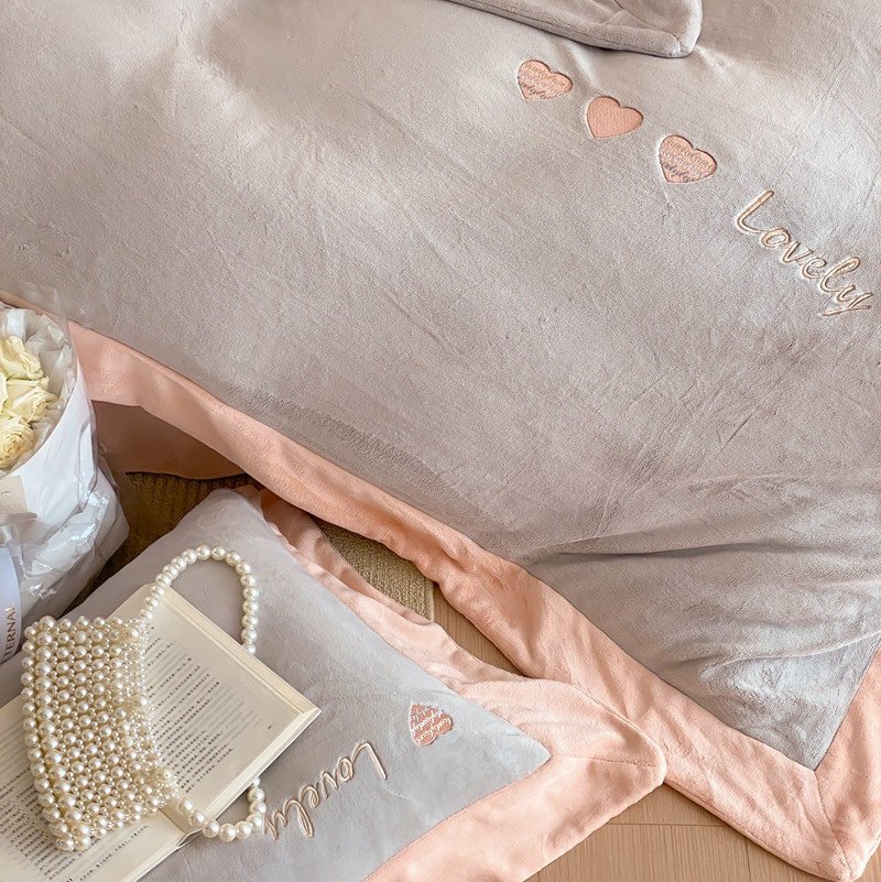 商品名称:橘滋 2022新款高端系列牛奶绒四件套-心动系列 心动-灰