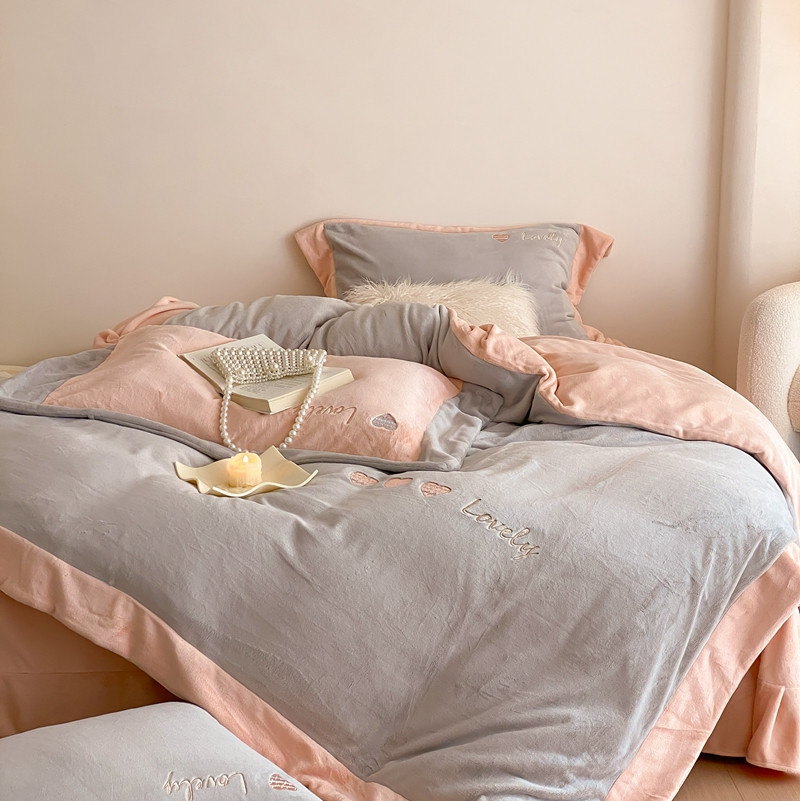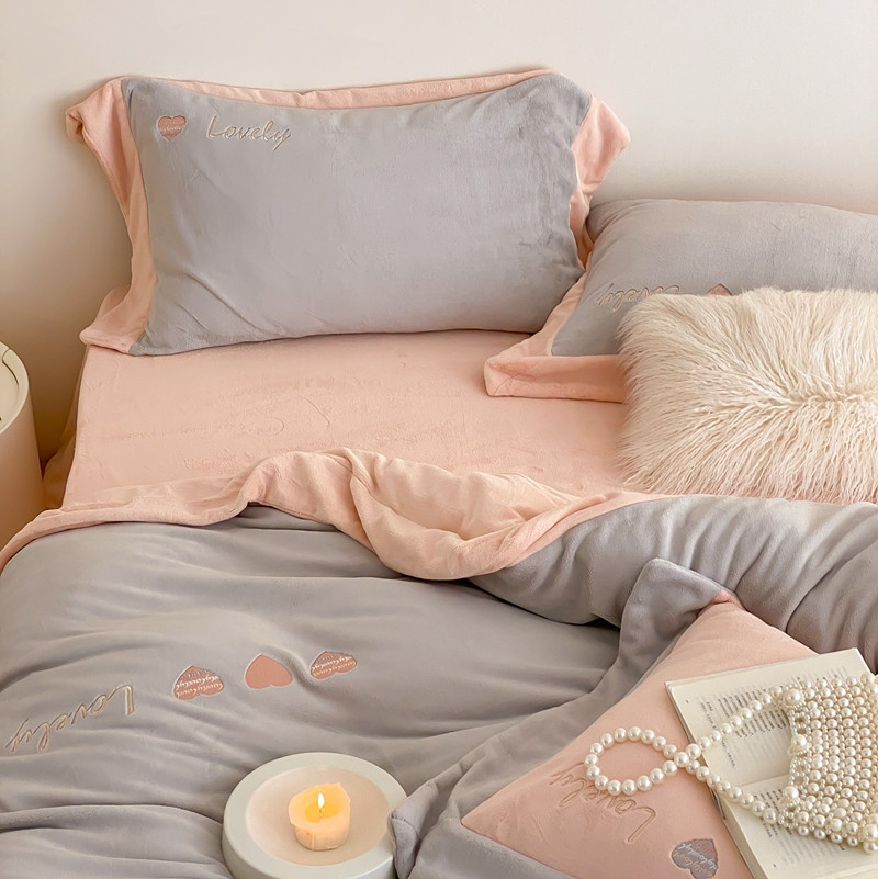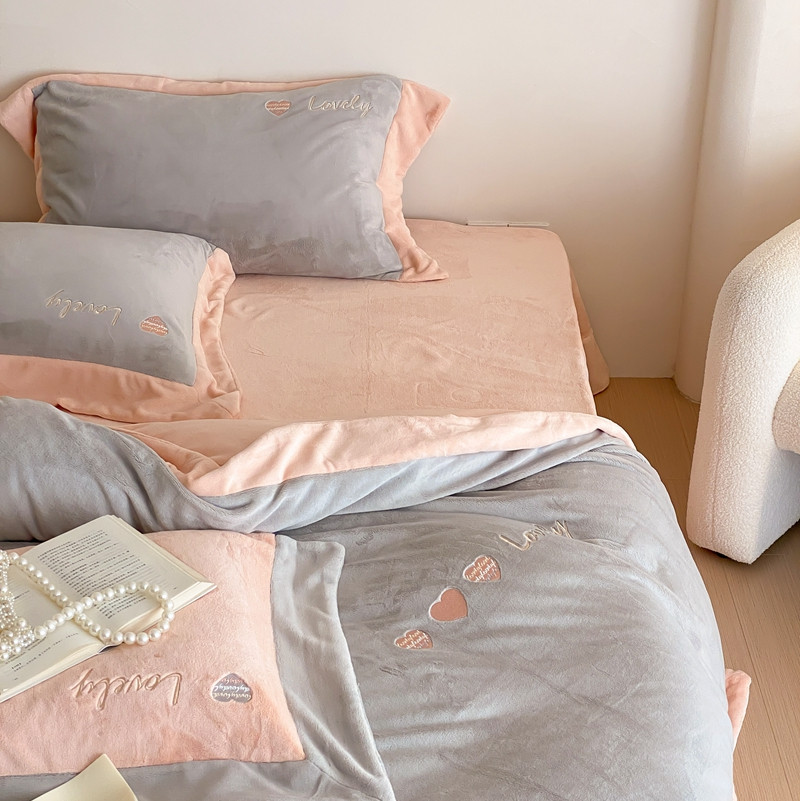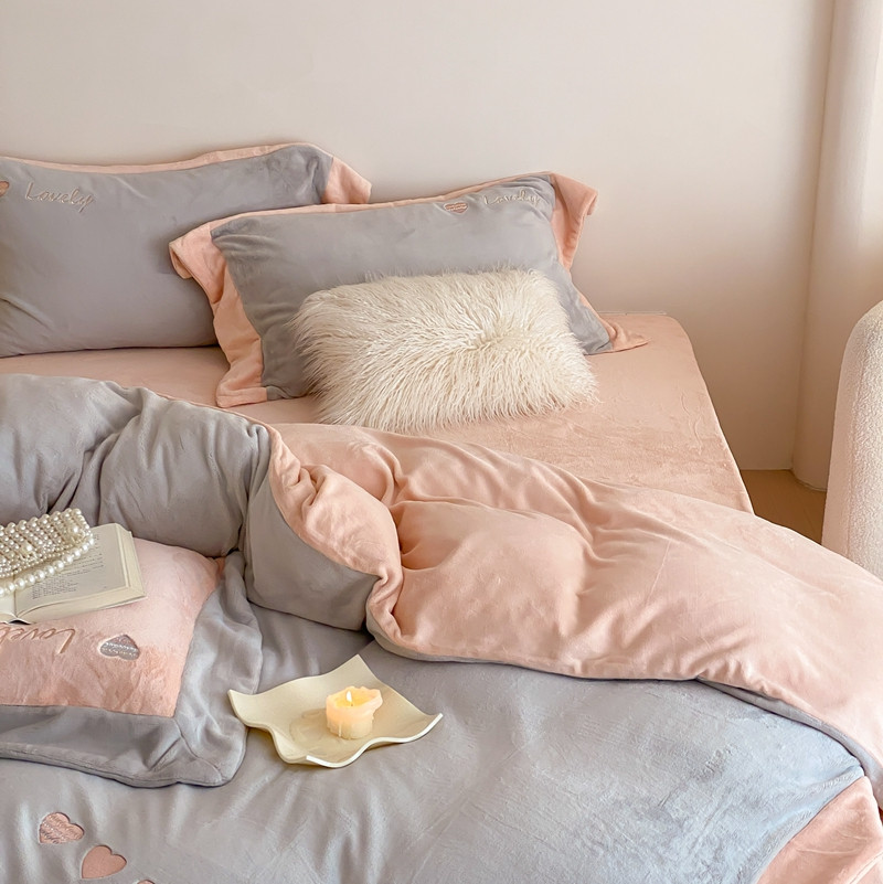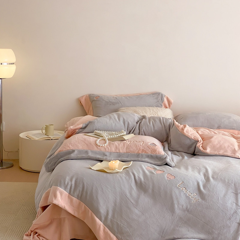 橘滋 2022新款高端系列牛奶绒四件套-心动系列 心动-灰