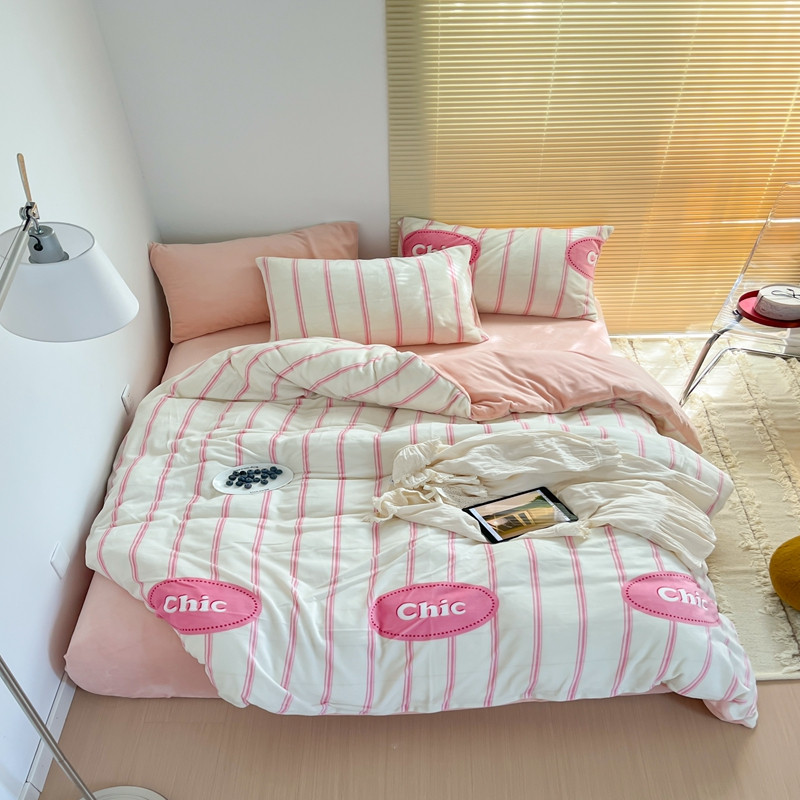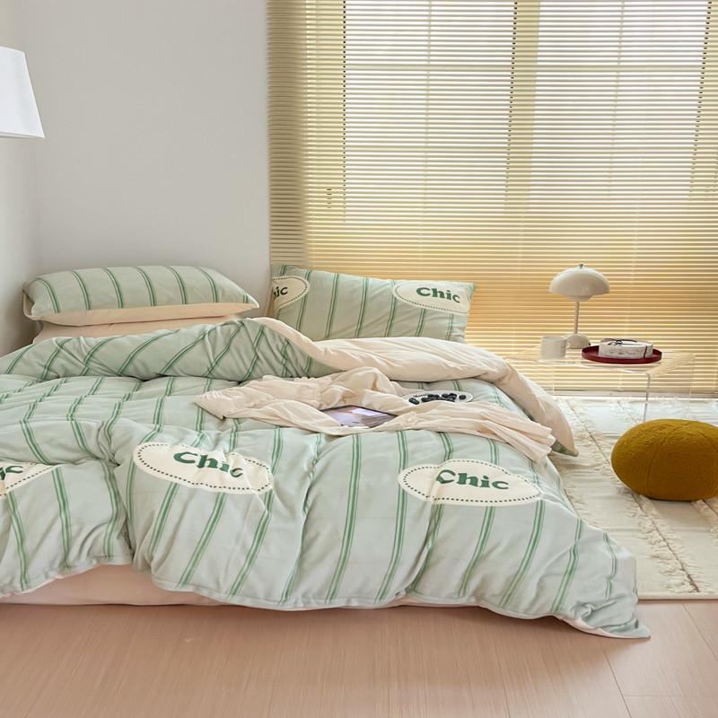 (总)昔可 2022新款简约条纹系列牛奶绒四件套