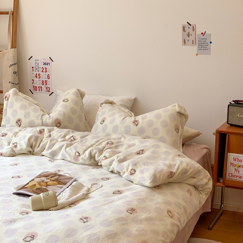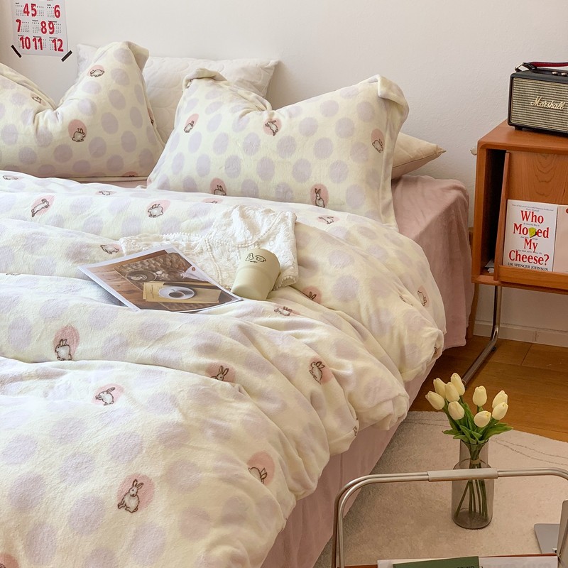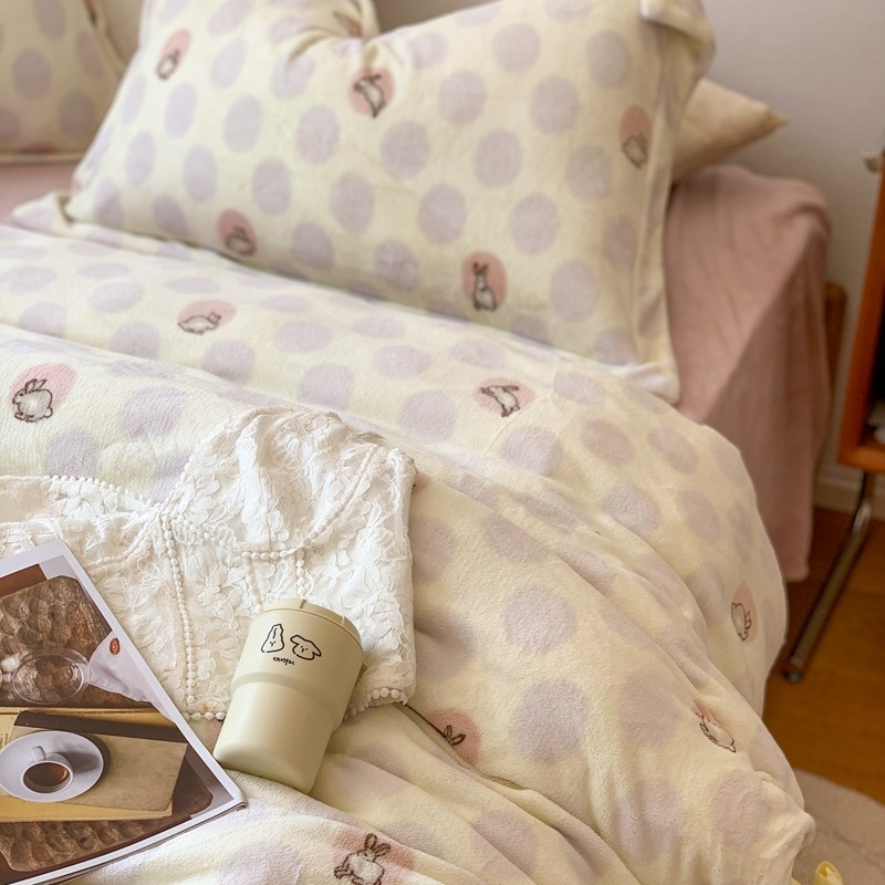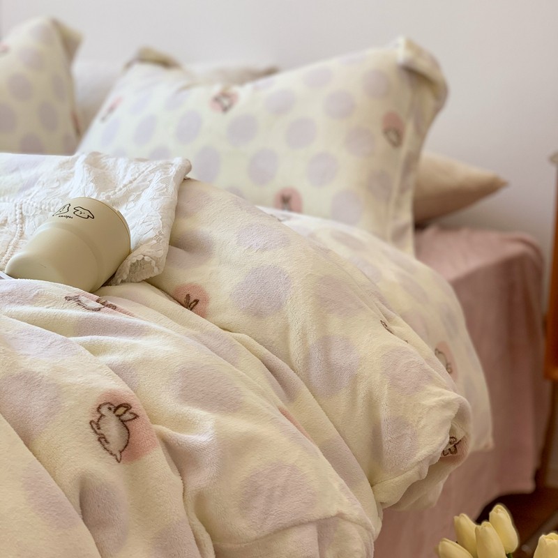 时年 2022新款全消光牛奶绒印花四件套 萌萌兔