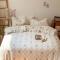 (总)时年 2021新款婴肤绒纯色花边款四件套,奶油泡芙,丝绒蓝灰,香草抹茶,杨枝甘露,芝芝莓莓