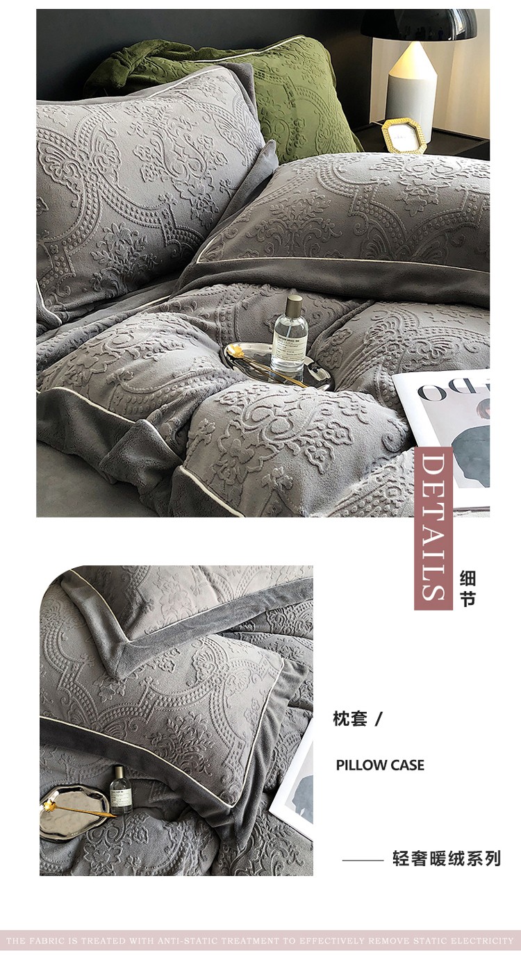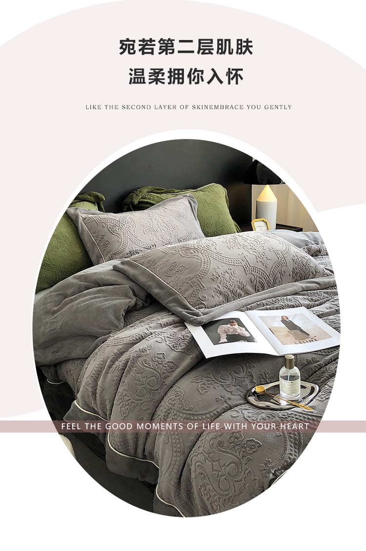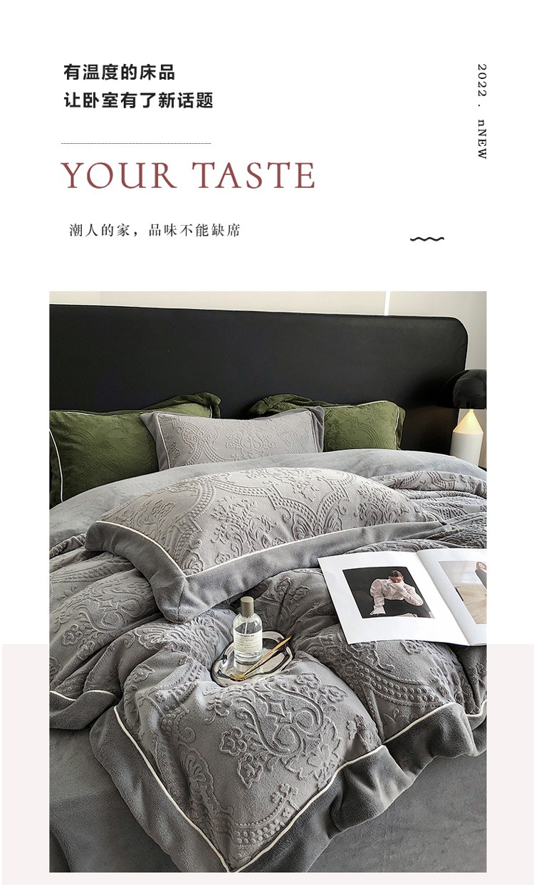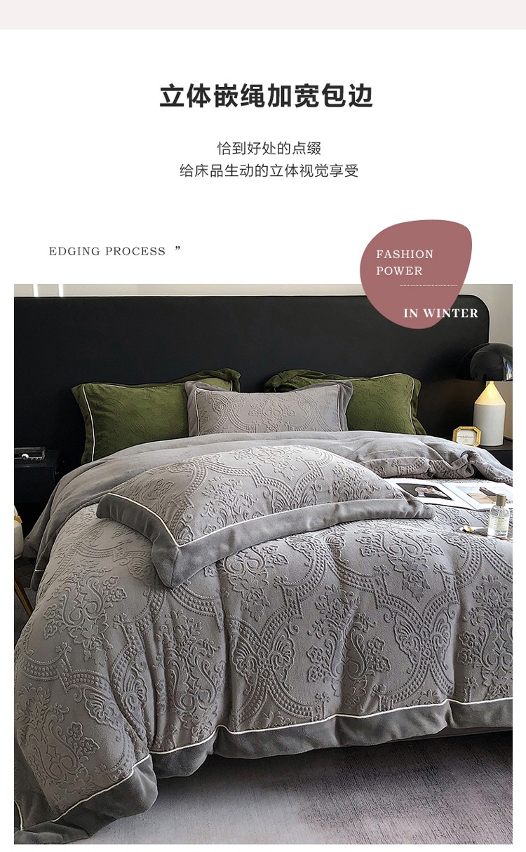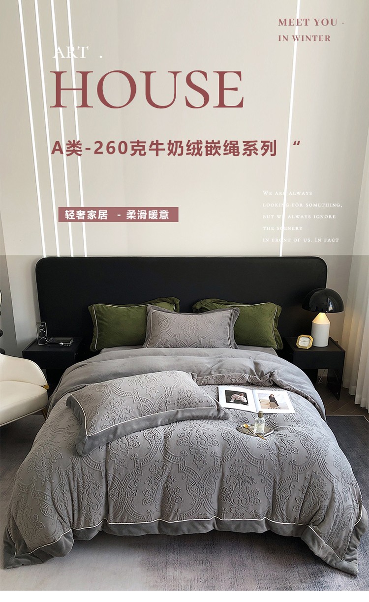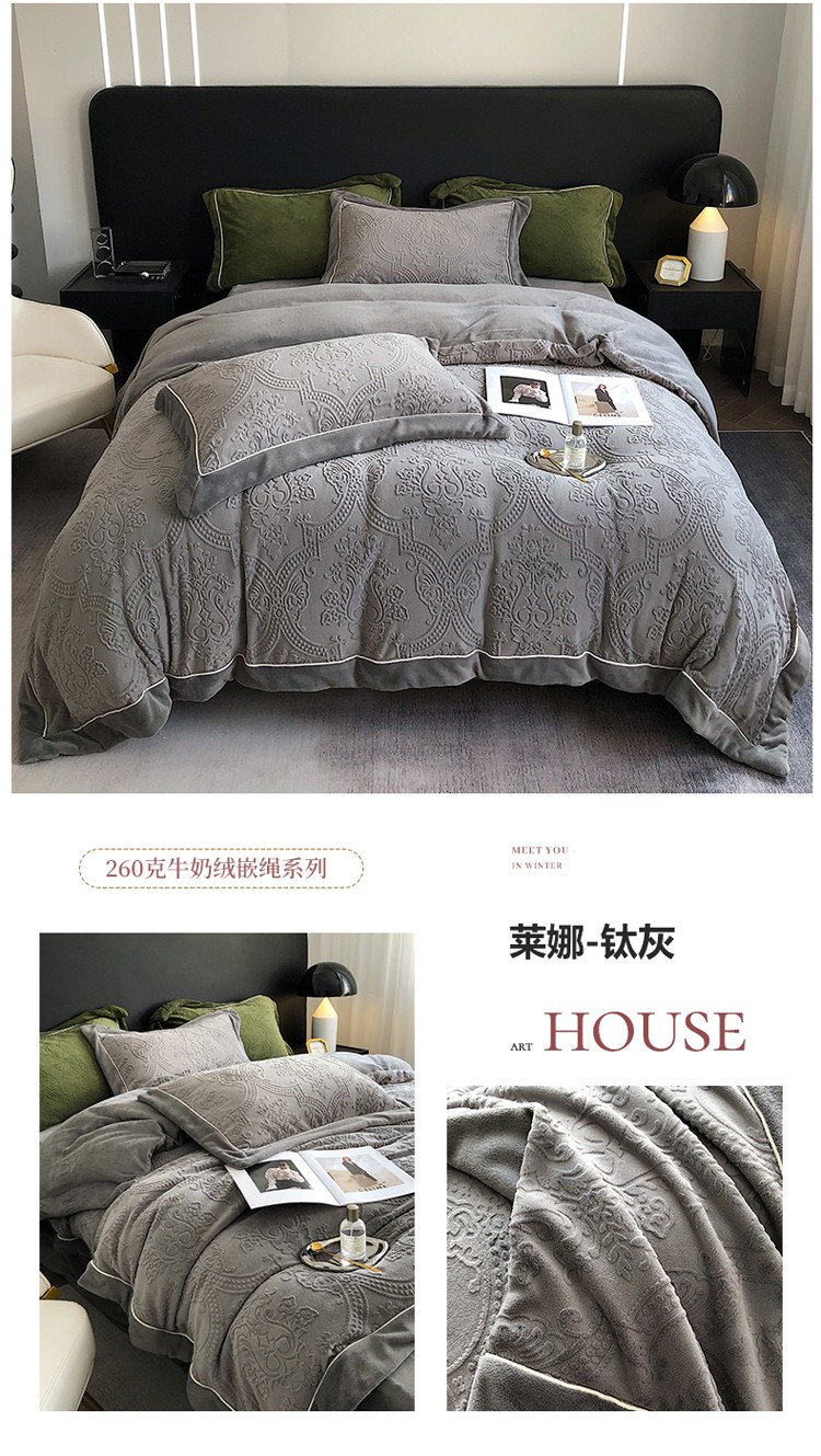 宜代光年 260克全消光牛奶绒嵌绳莱娜系列四件套莱娜-钛灰