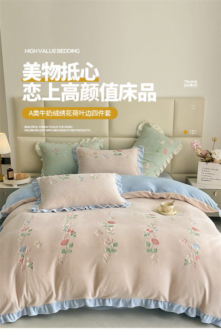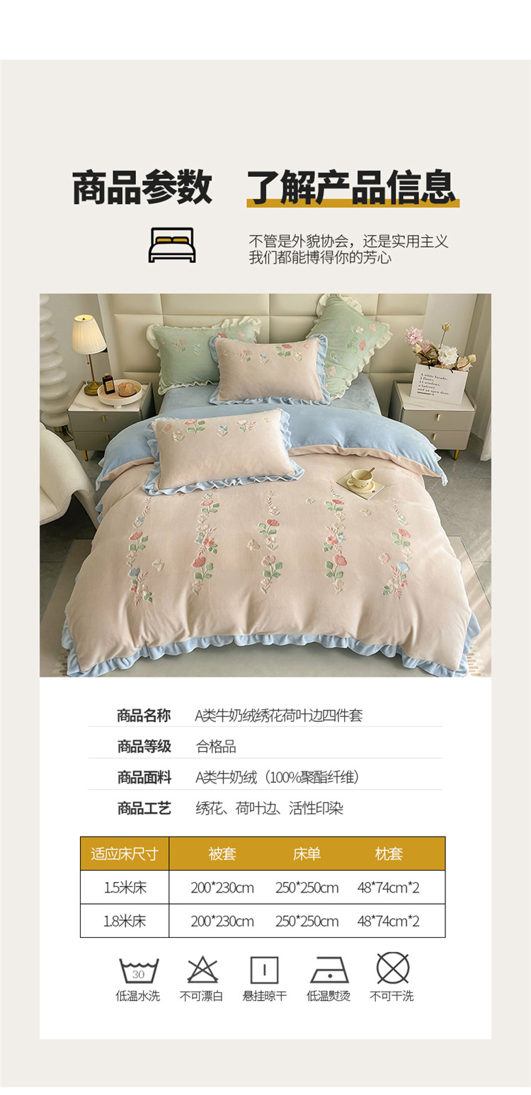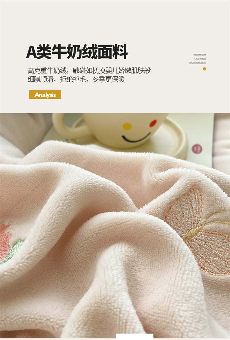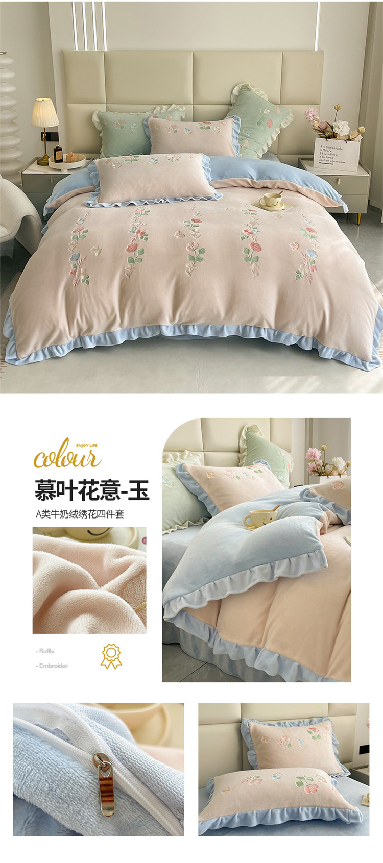 商品名称:懒猫 2022新款牛奶绒绣花四件套-慕叶花意 慕叶花意-玉