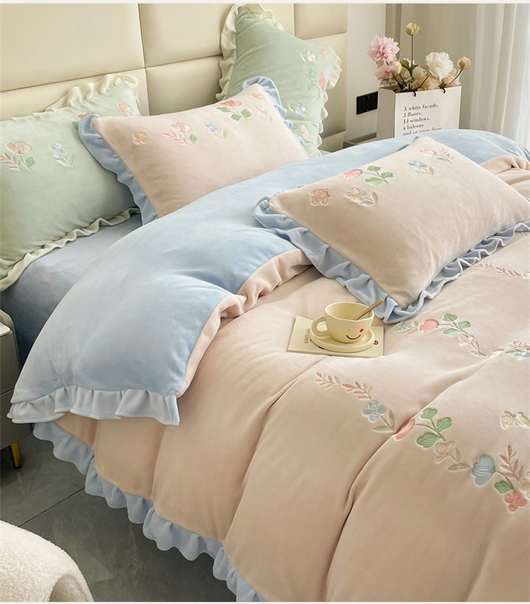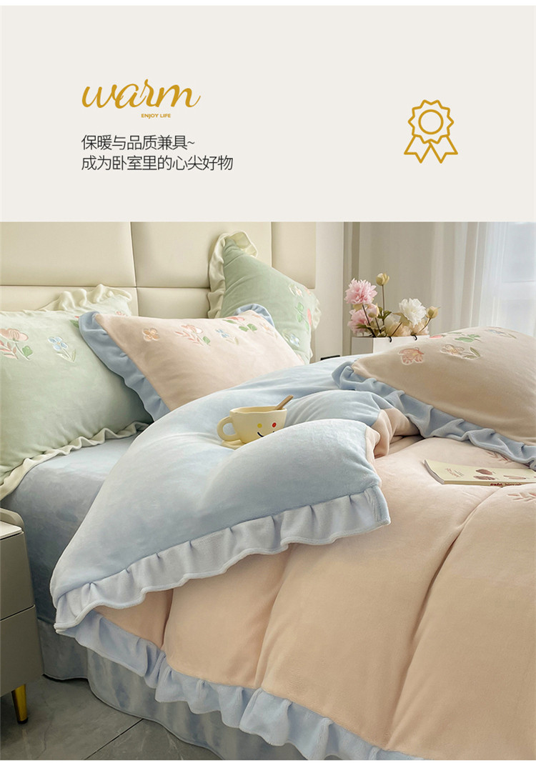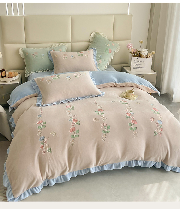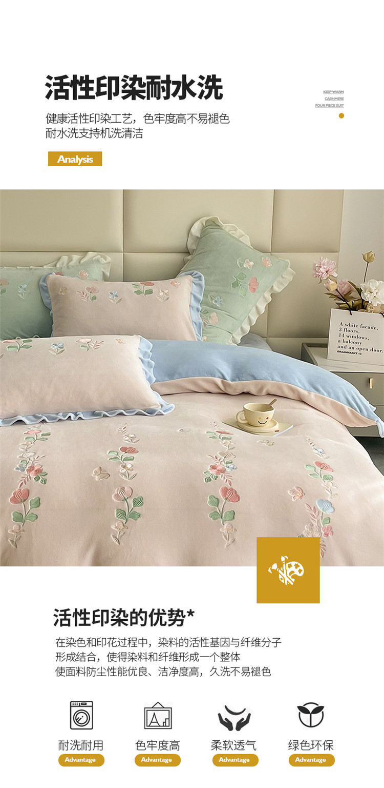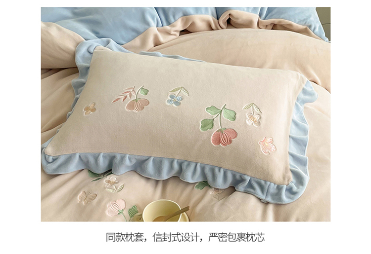 商品名称:懒猫 2022新款牛奶绒绣花四件套-慕叶花意 慕叶花意-玉