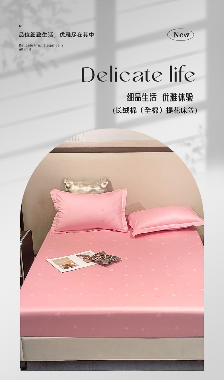 品乐 2022新款100支长绒棉提花床笠 纯色爱心粉