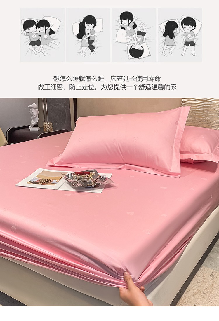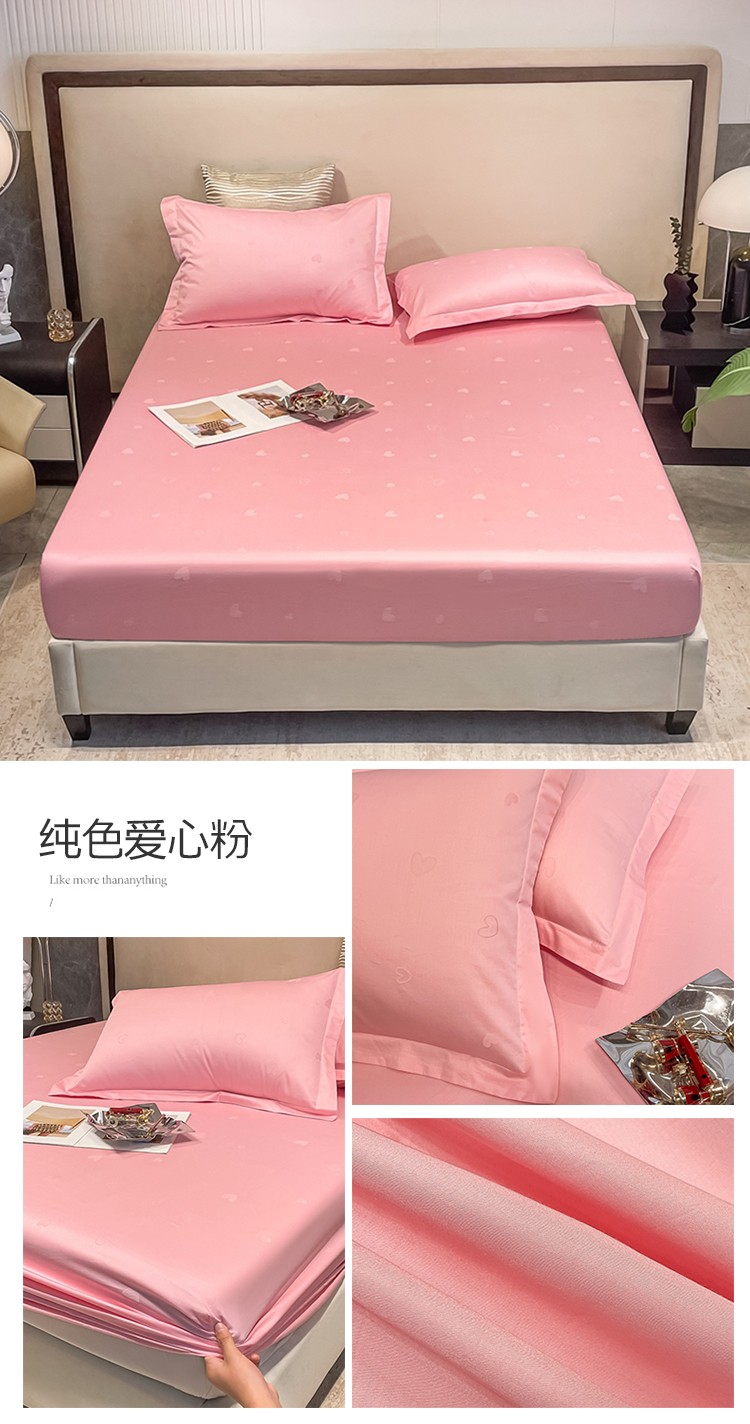 商品名称:品乐 2022新款100支长绒棉提花床笠 纯色爱心粉