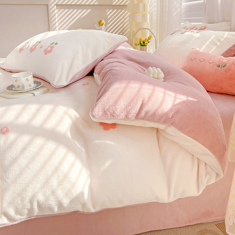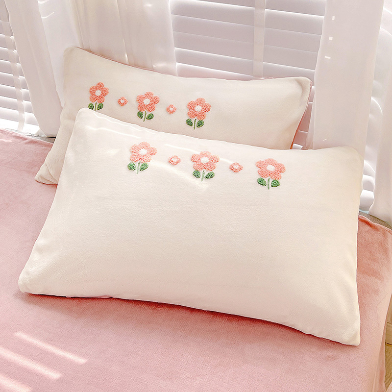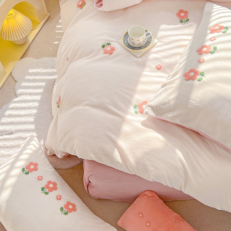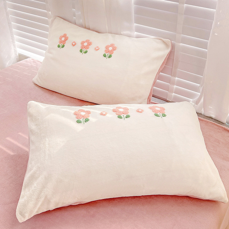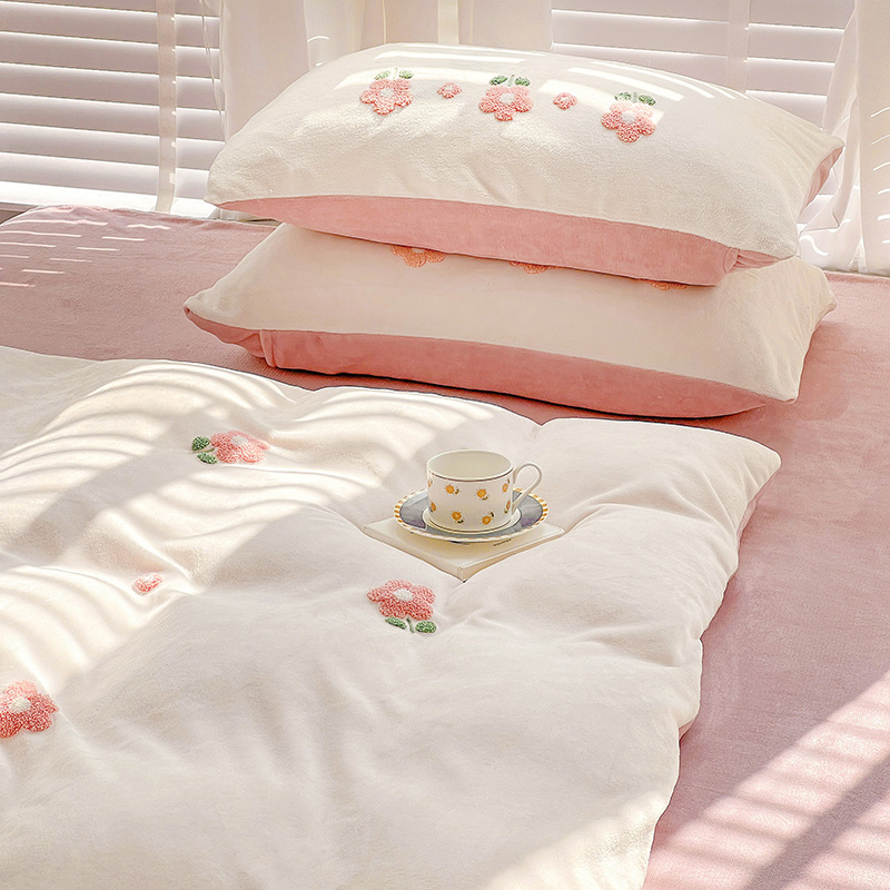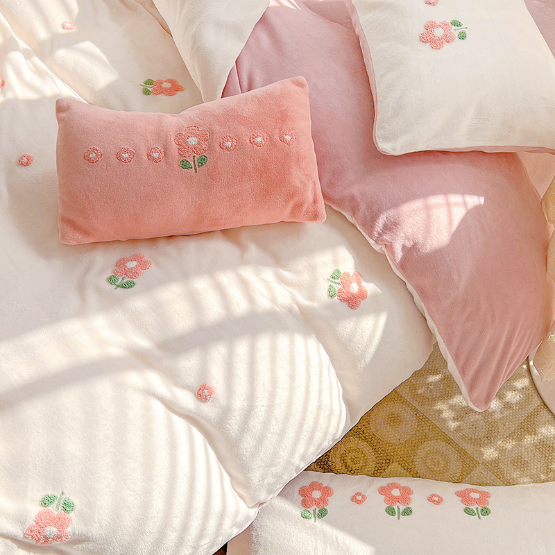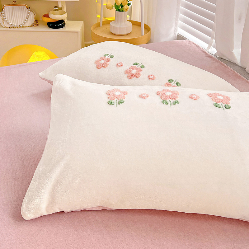 商品名称:寐居2022新款毛巾绣牛奶绒单被套 朵朵花开-粉白