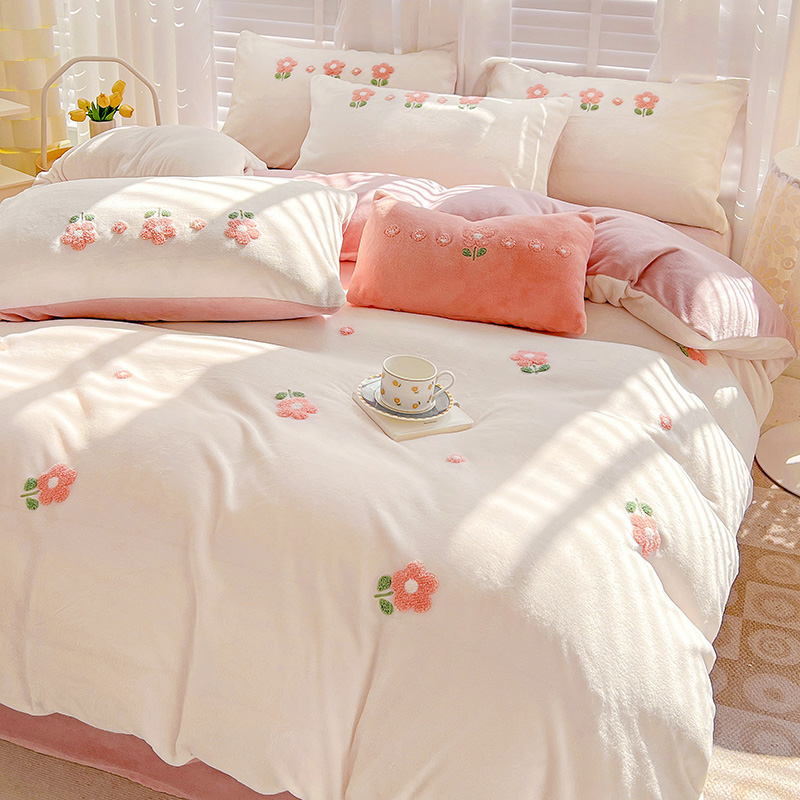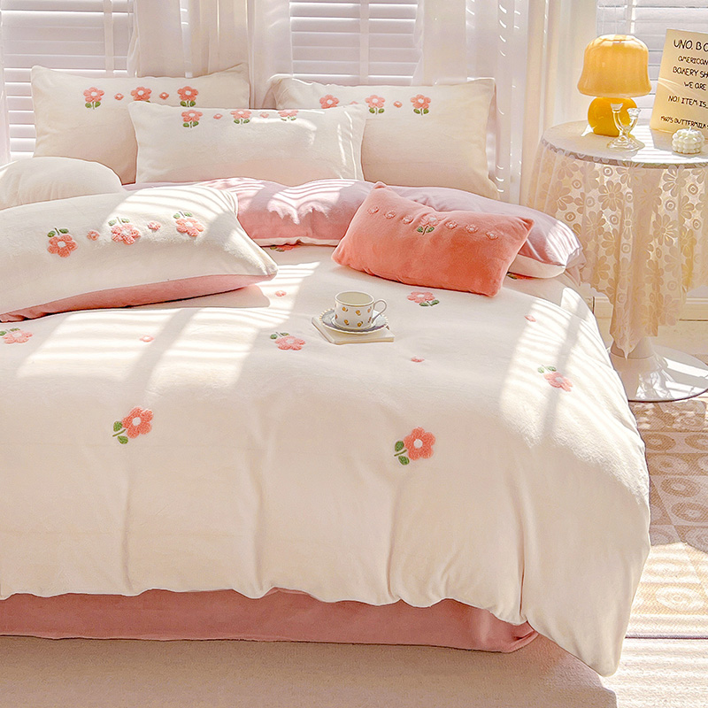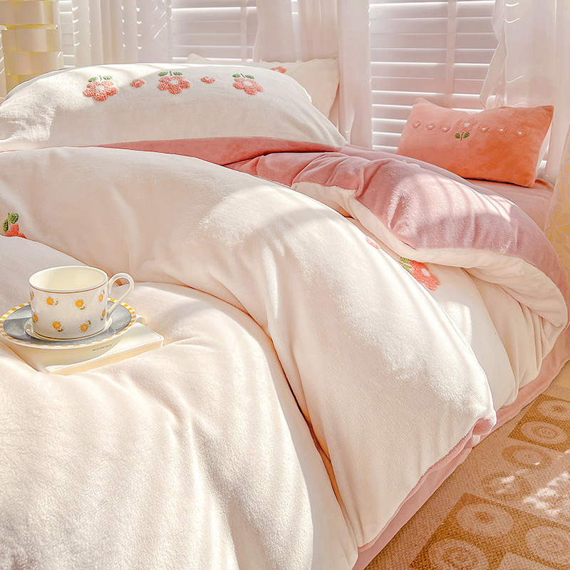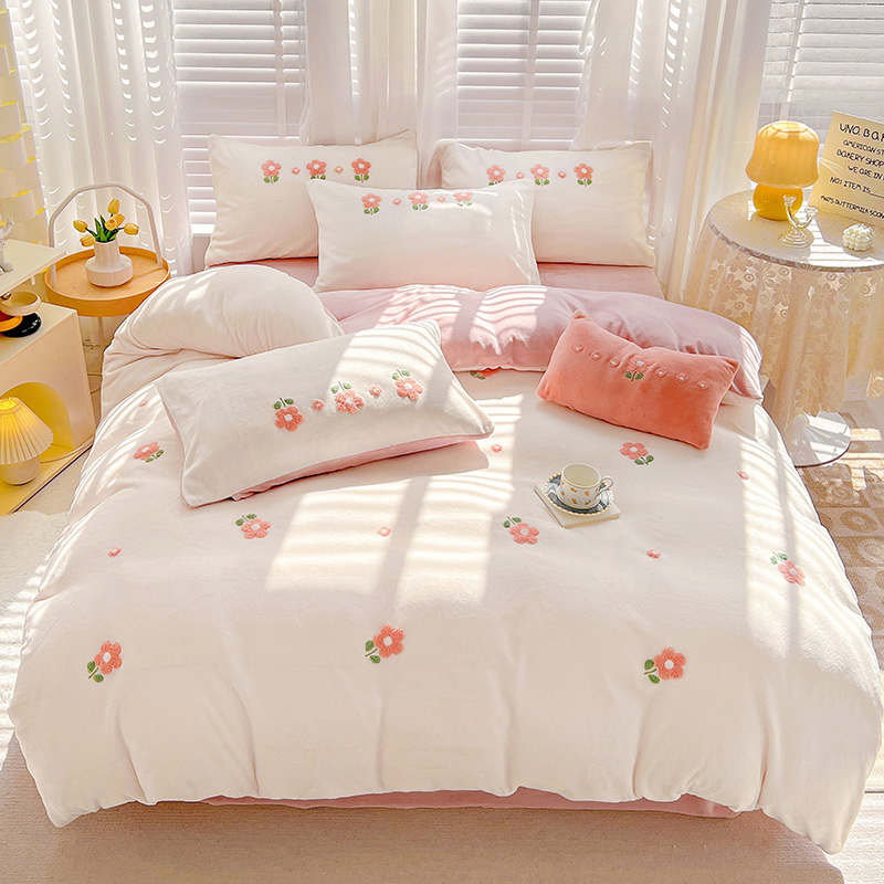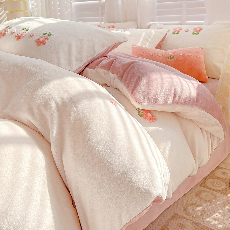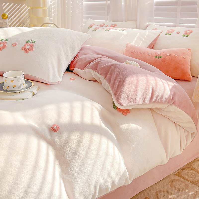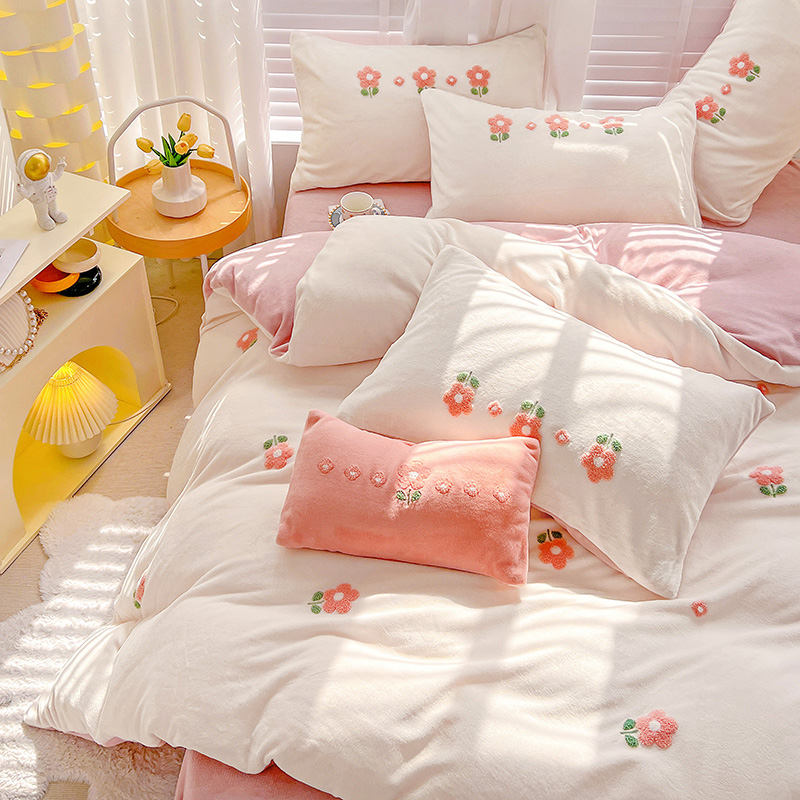 商品名称:寐居2022新款毛巾绣牛奶绒单被套 朵朵花开-粉白