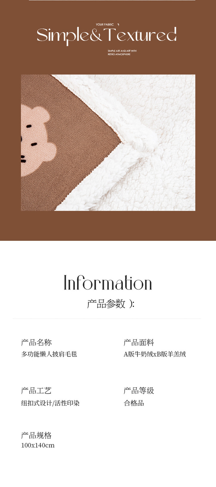 当前位置: 91家纺网 > 商品网购 > 毛毯休闲毯绒毯 > 毛毯 > 美伦美焕 2022新款多功能懒人披肩毯跳跳熊