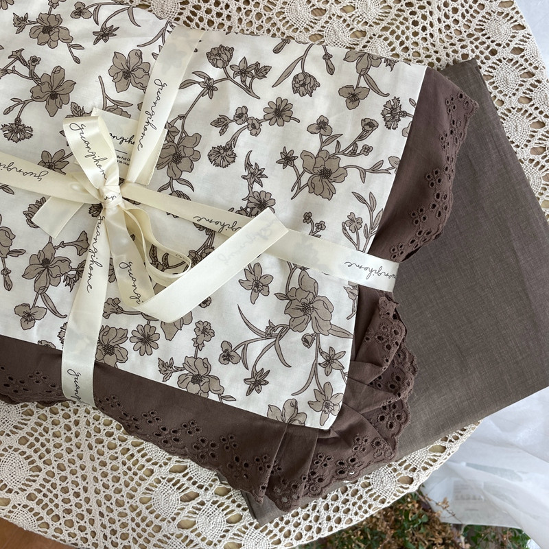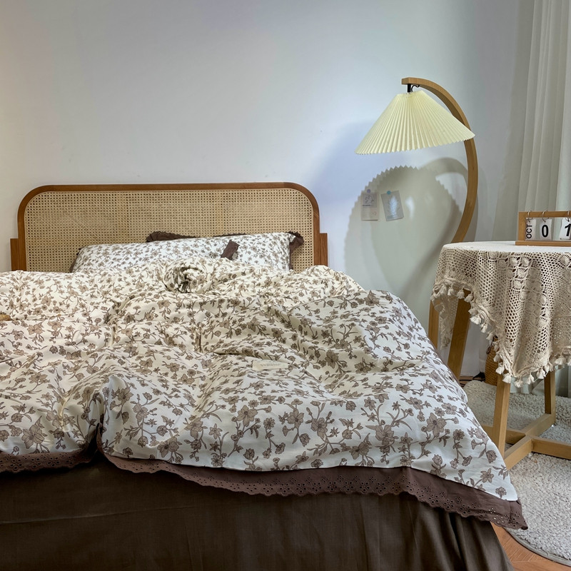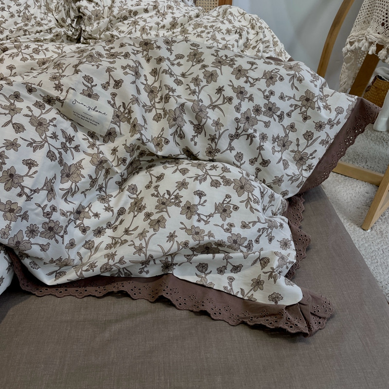 源启生活 2022新款全棉法式田园风花边款四件套 木笔