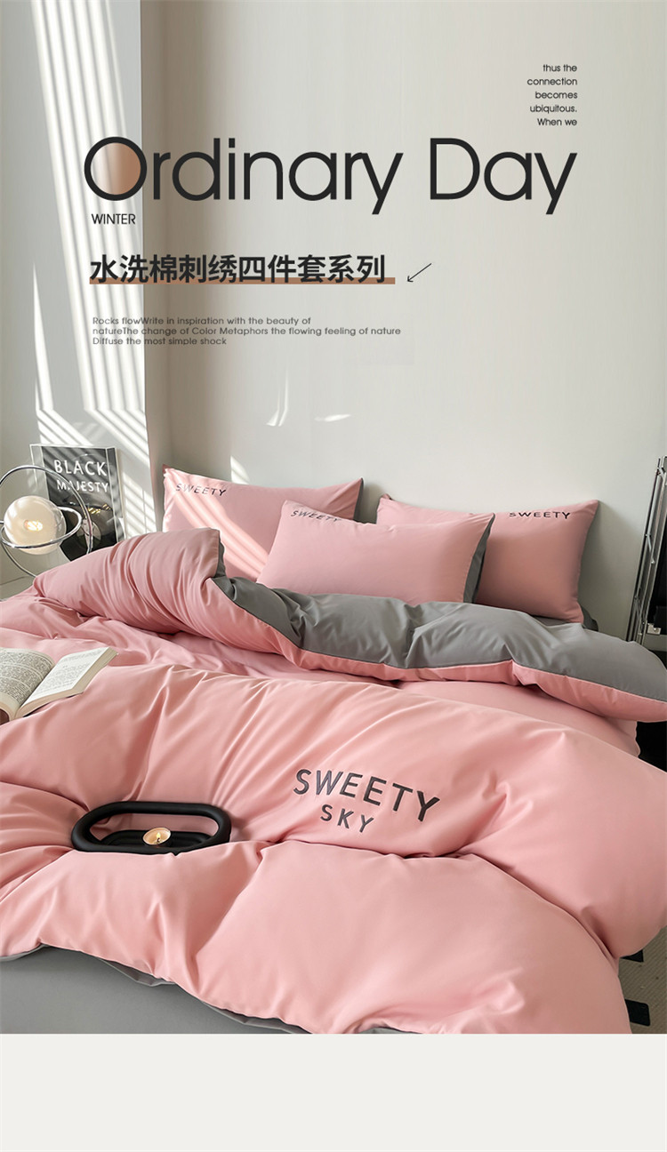 (总)麦空家居 2025新款学生季亲肤水洗棉刺绣四件套学生三件套-曲奇,白桃粉,黑森林,焦糖白,莫兰迪,雾霾灰