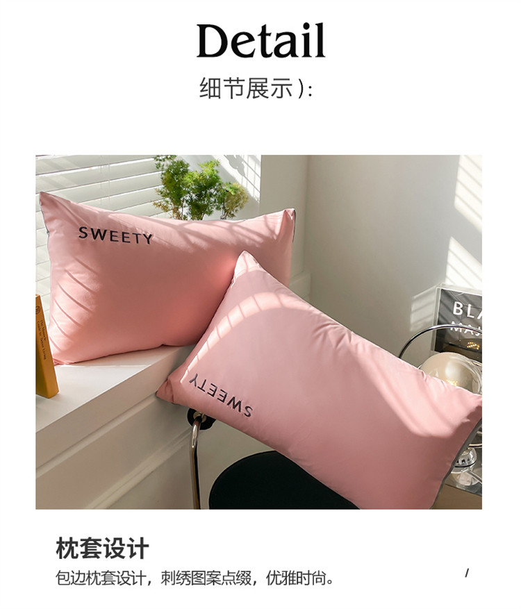 麦空 2025新款水洗棉刺绣纯色四件套-晴空系列 玫瑰粉