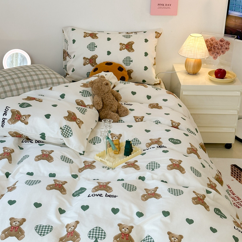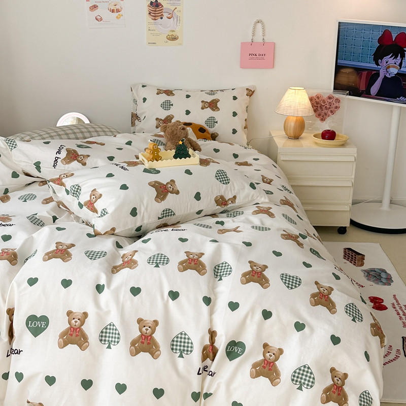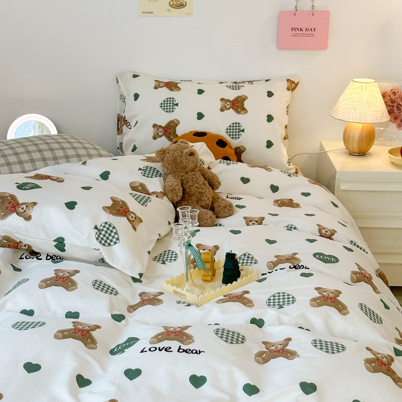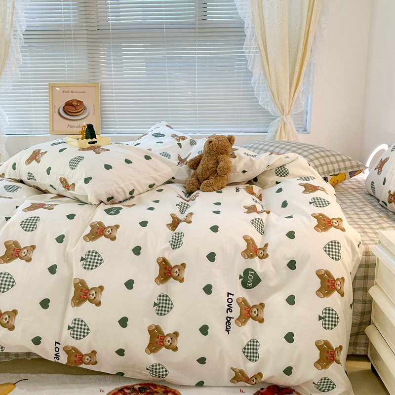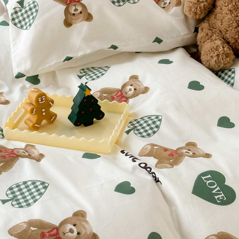 商品名称:昔可 2023新款可爱元气卧室新款全棉四件套 爱心熊 绿