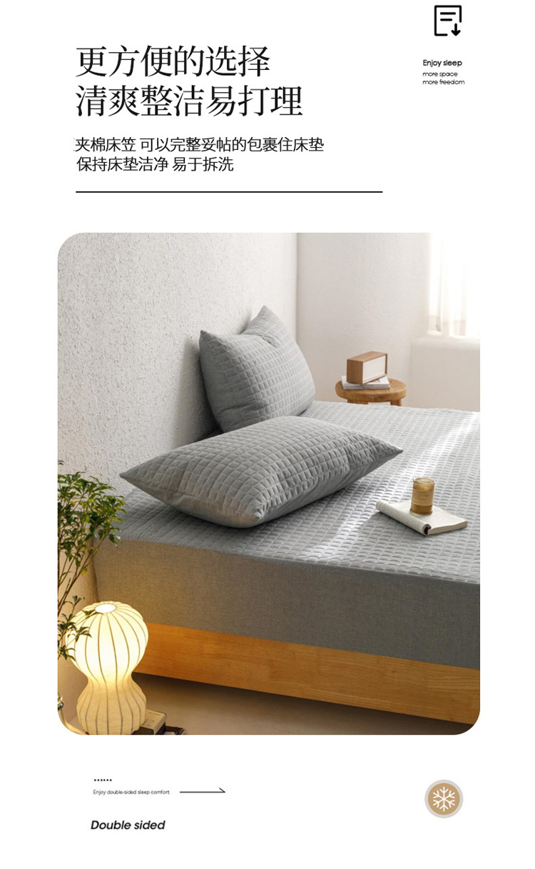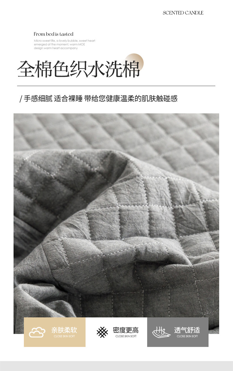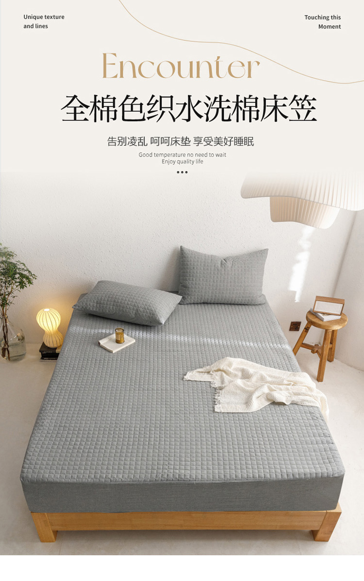 忘忧草 2023新款全棉色织水洗棉夹棉床笠纯棉无印风格纯色 格韵-浅灰