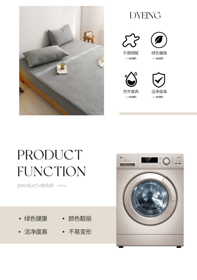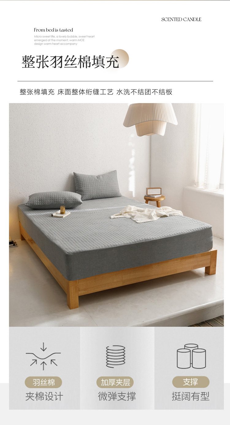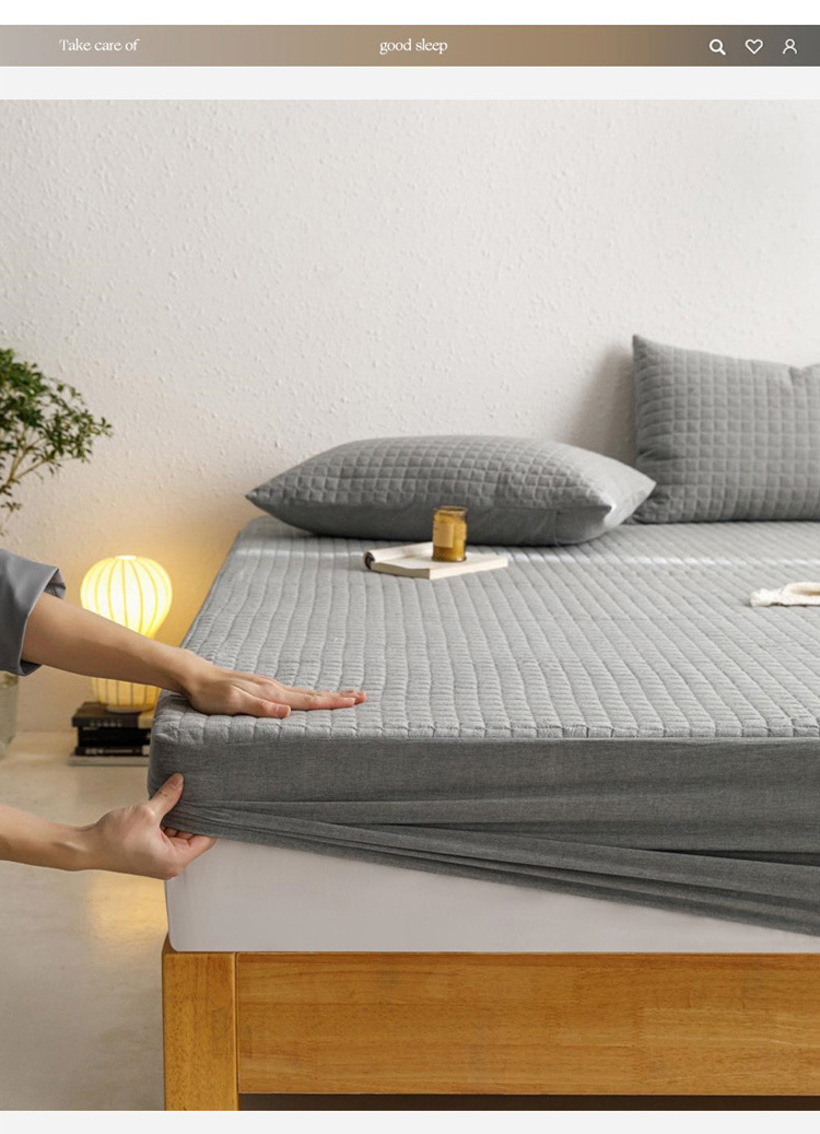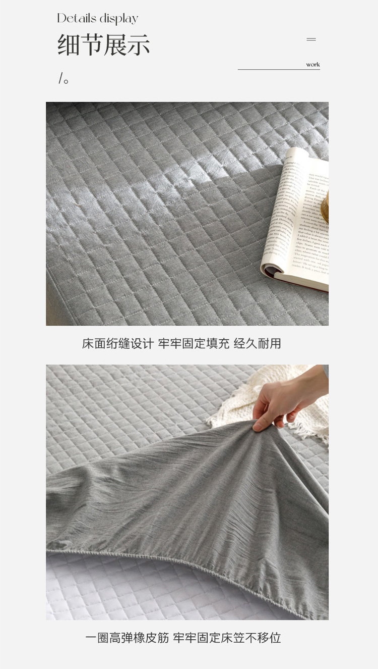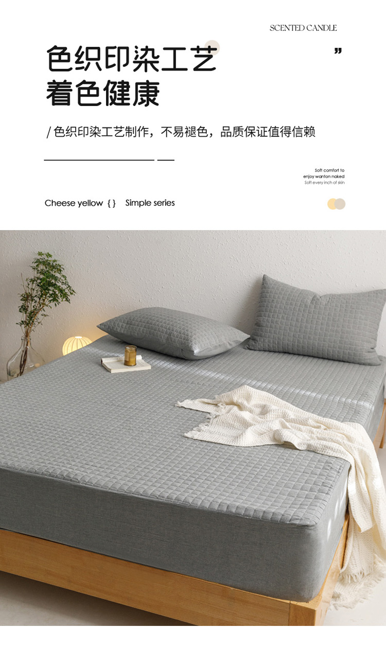 商品名称:忘忧草 2023新款全棉色织水洗棉夹棉床笠纯棉无印风格纯色 格韵-浅灰