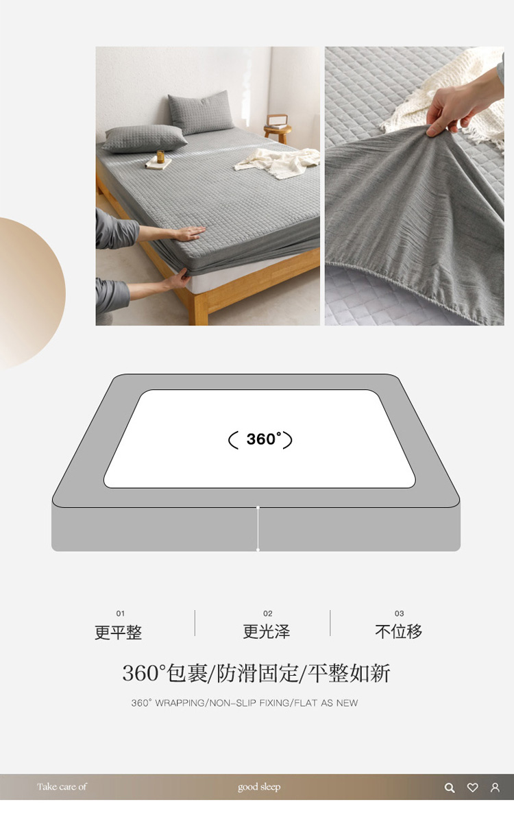 (总)忘忧草 2025新款A类针织棉夹棉防水床笠隔尿垫床罩,淡雅白,豆沙红,翡翠绿,丽人粉,浅米黄,绅士灰