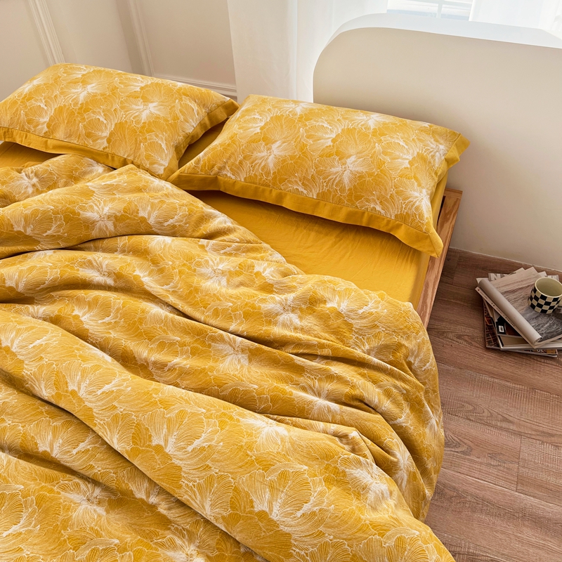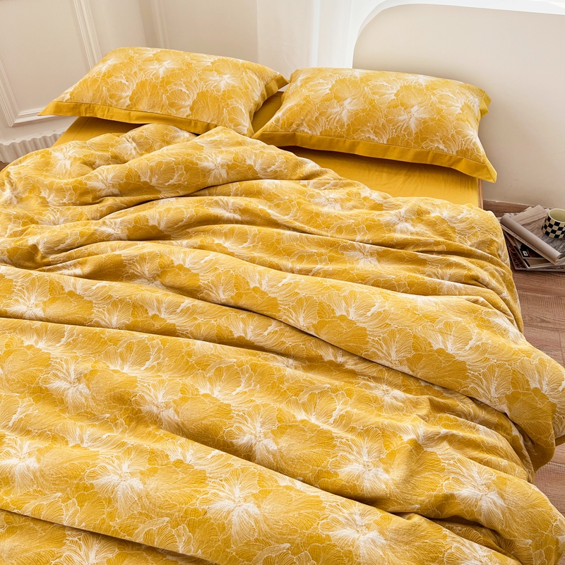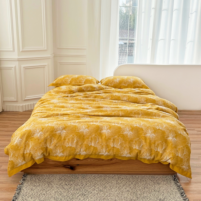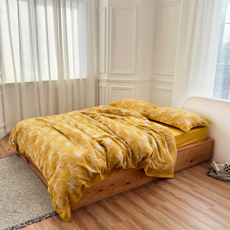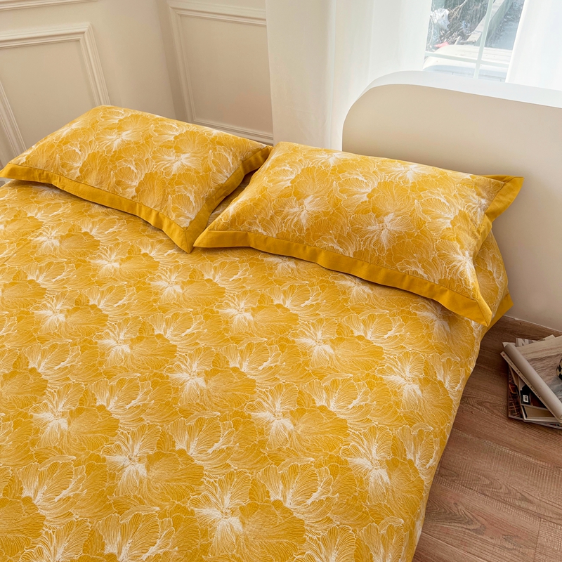 商品名称:安莱生活 2023新款色织双层纱工艺款宽边高奢四件套 国色天香-姜黄