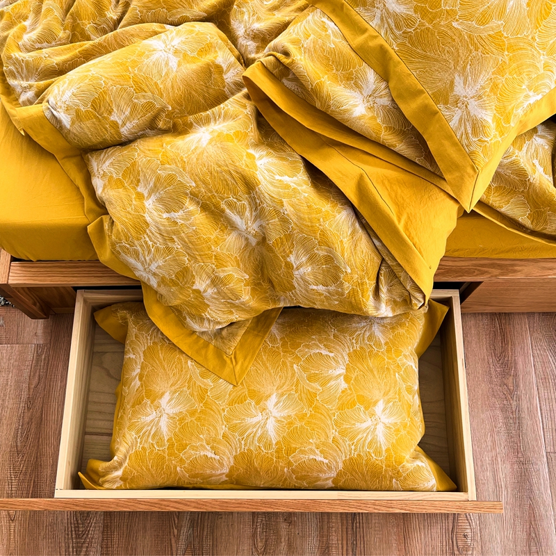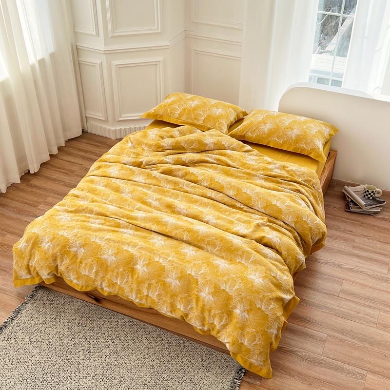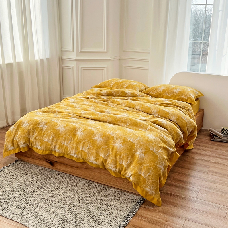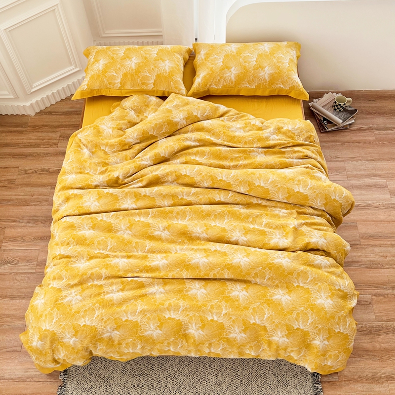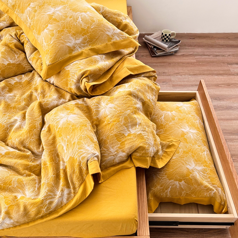 商品名称:安莱生活 2023新款色织双层纱工艺款宽边高奢四件套 国色天香-姜黄