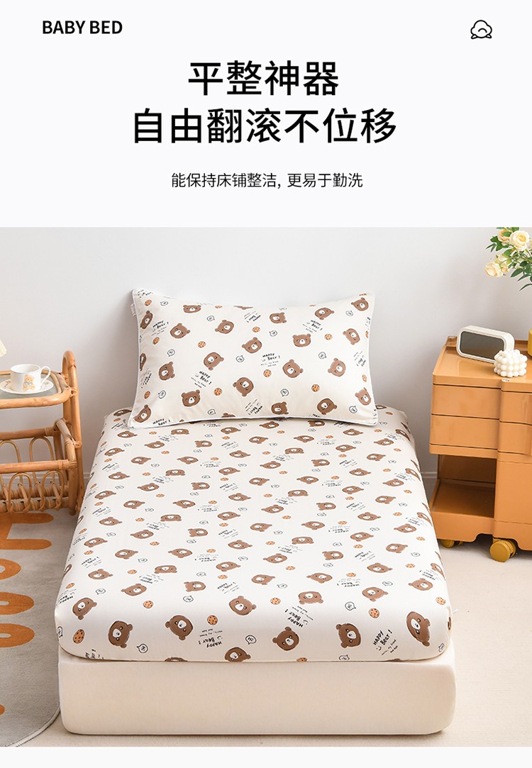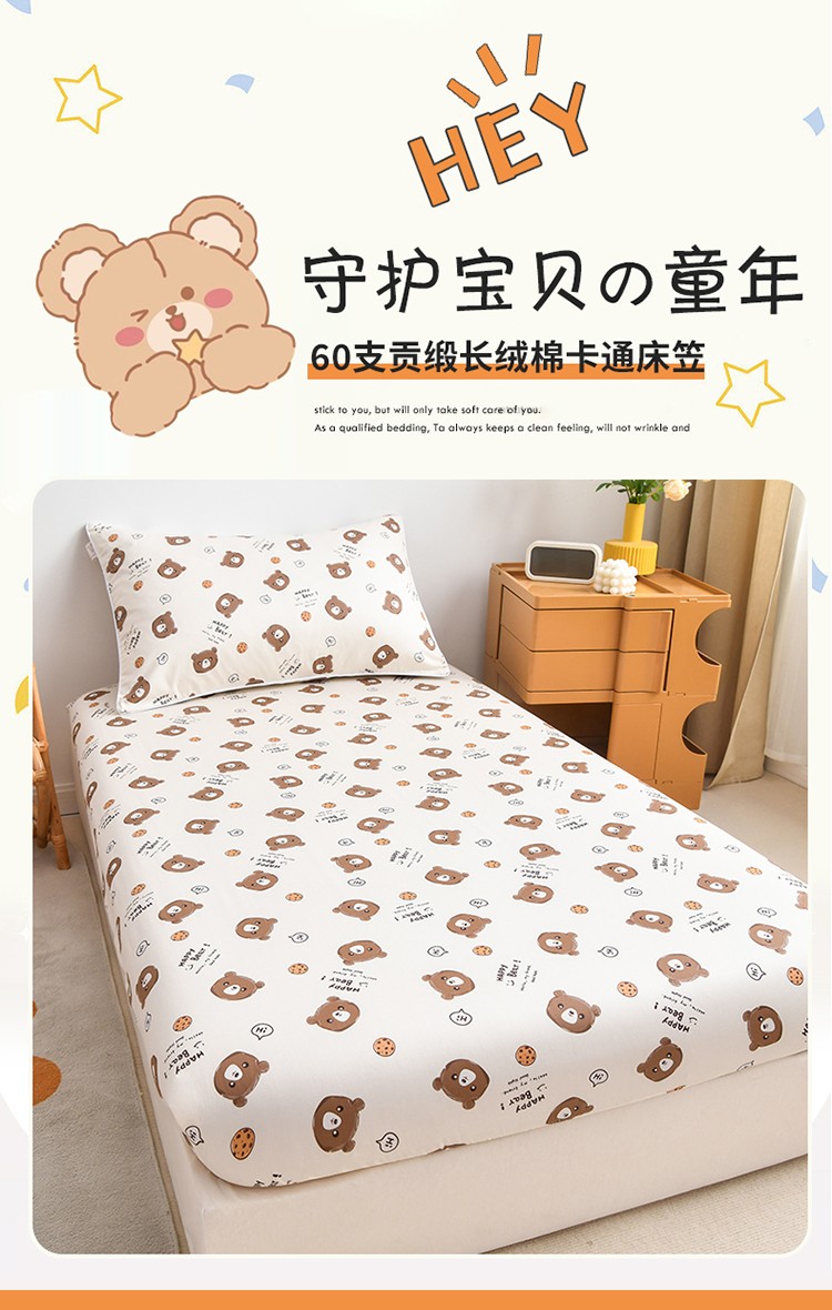 ds生活馆 2025新款幼儿园学生60支贡缎长绒棉纯棉单床笠 饼干熊
