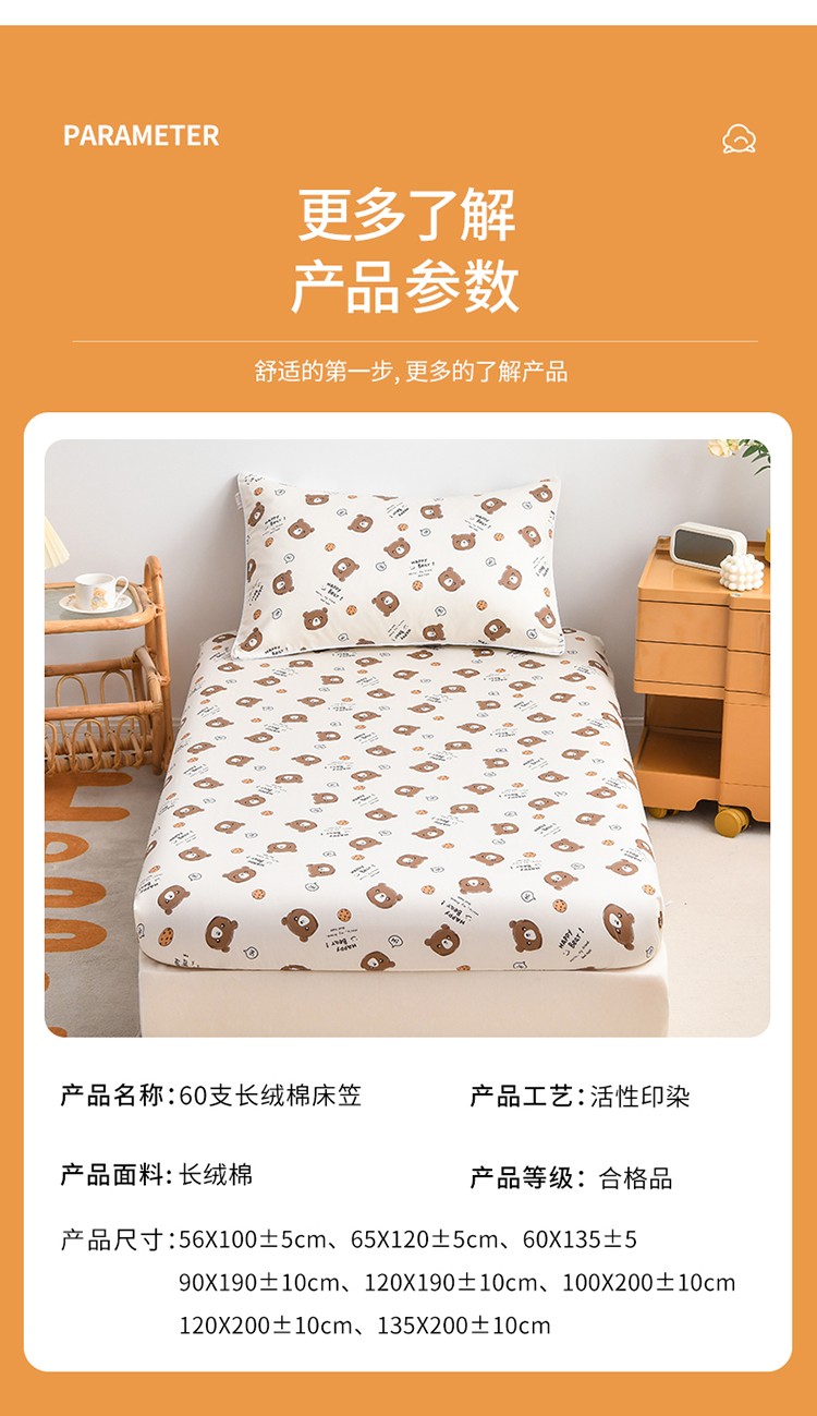 商品名称:ds生活馆 2025新款幼儿园学生60支贡缎长绒棉纯棉单床笠 饼干熊